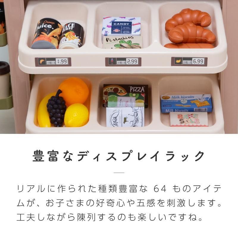 カートやお金も付属していて、本格的なお店屋さんごっこが楽しめます。
