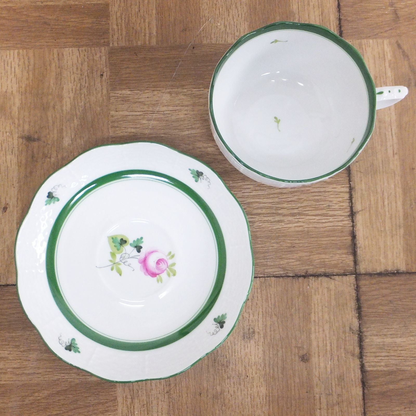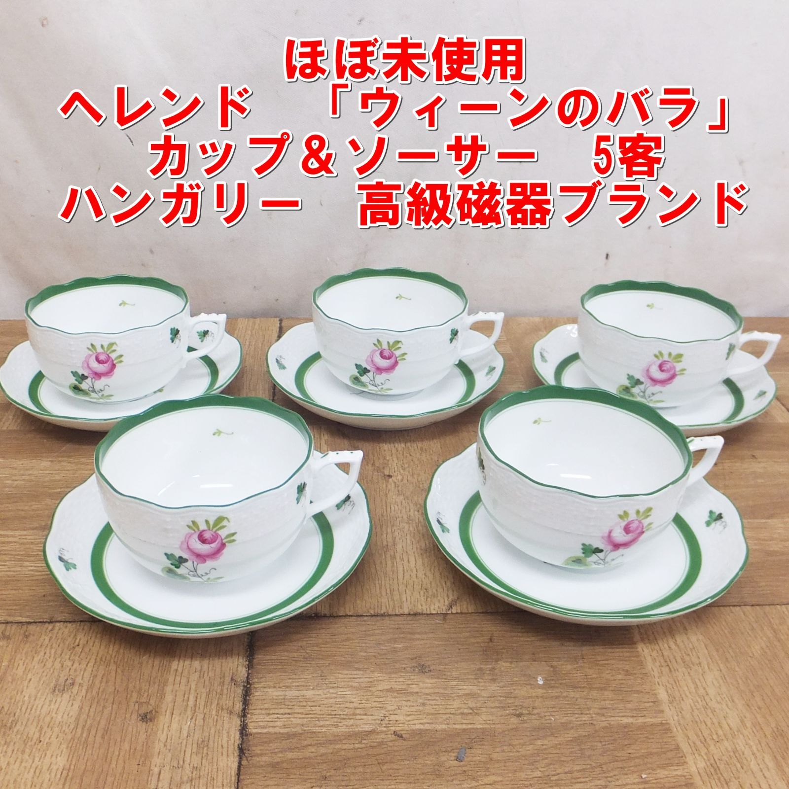 R587【ほぼ未使用】ヘレンド 「ウィーンのバラ」 カップ&ソーサー 5客 ハンガリー 高級磁器ブランド /50