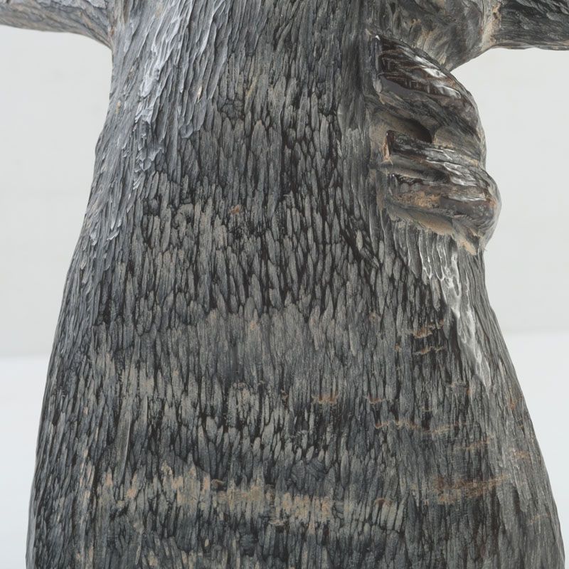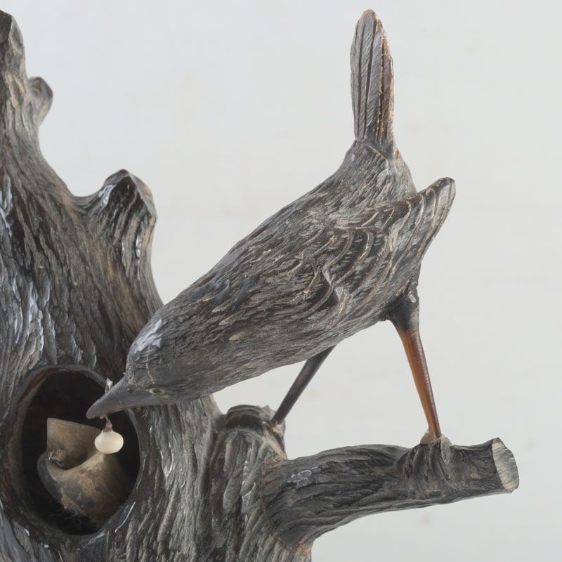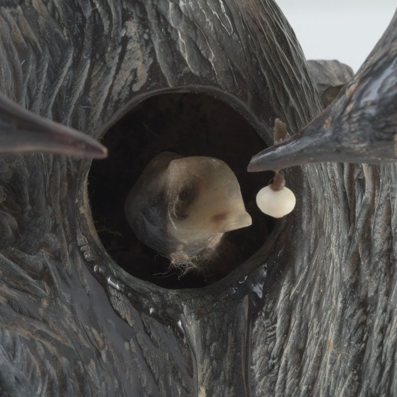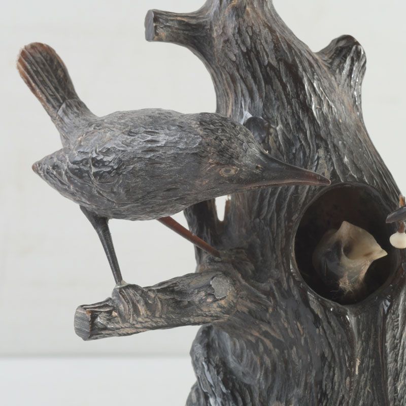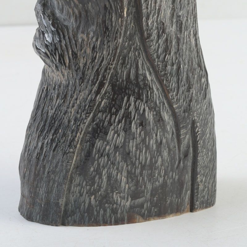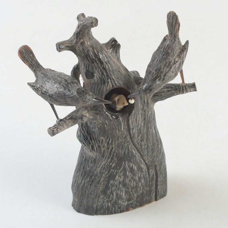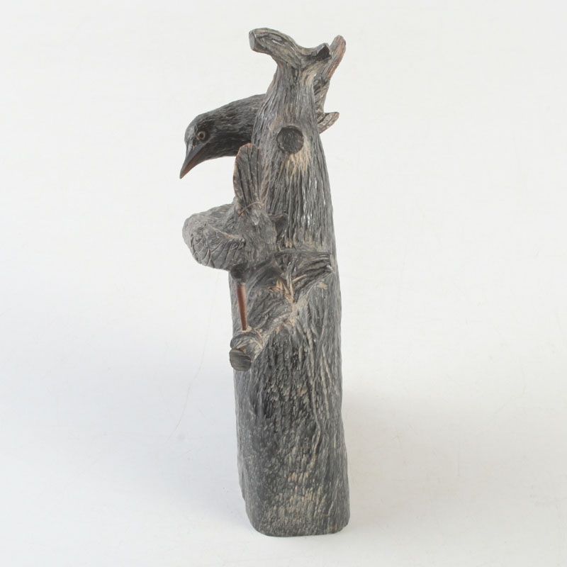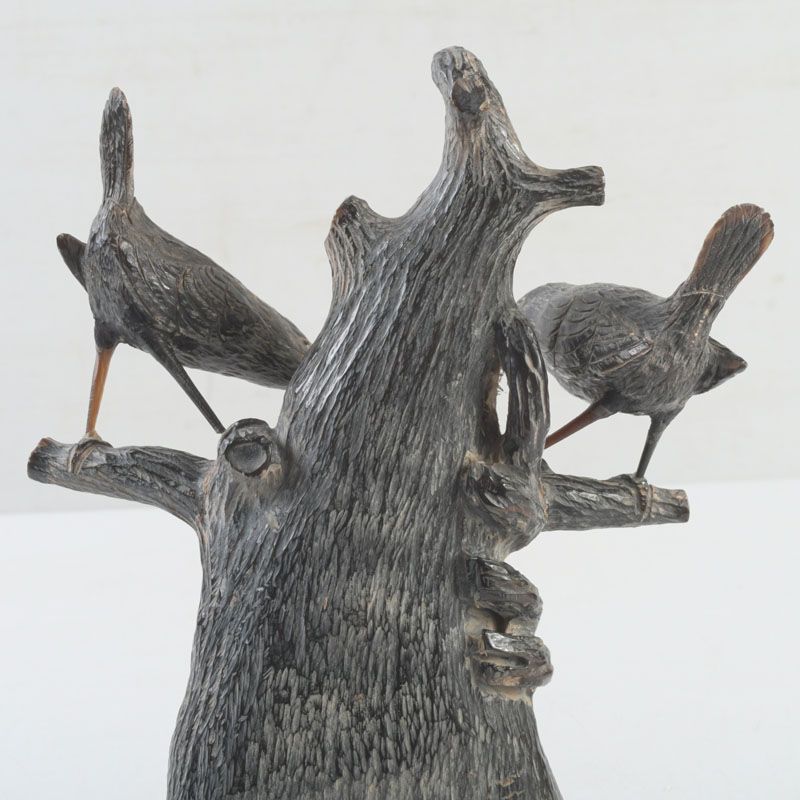 中国 水牛の角彫刻 木に鳥の親子 置物 N S239