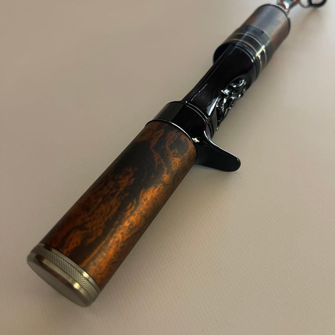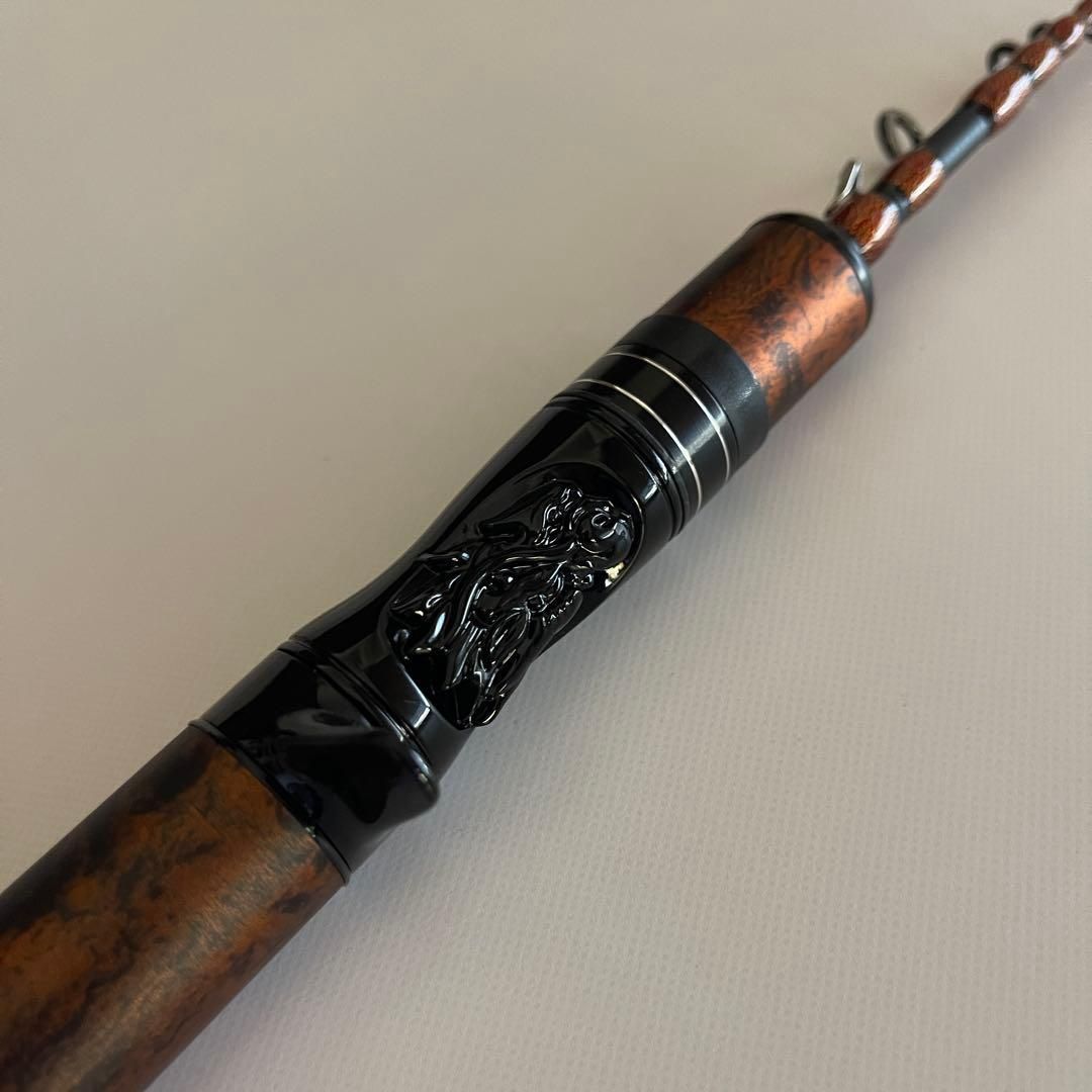 彫刻入りクリックロック式リールシートが放つ重厚感と、カーボン素材がもたらす高感度な実釣性能を融合したプレミアムベイトロッド。