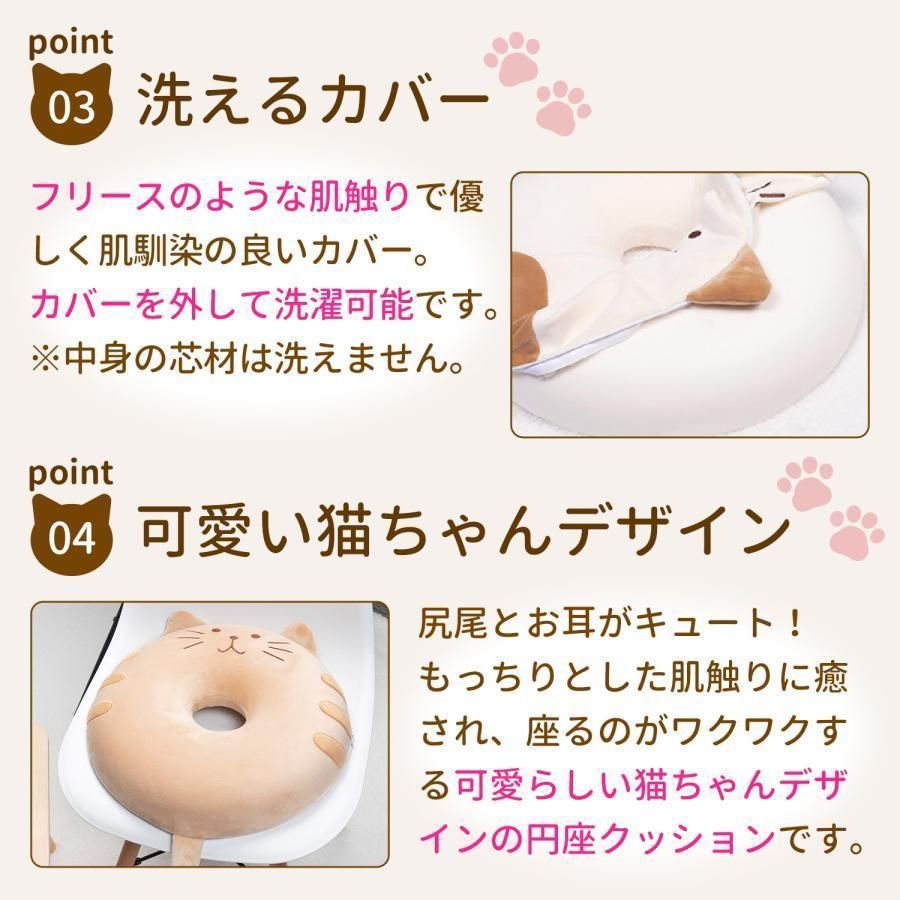 座るのがワクワクする、可愛らしい猫ちゃんデザインの円座クッションです。