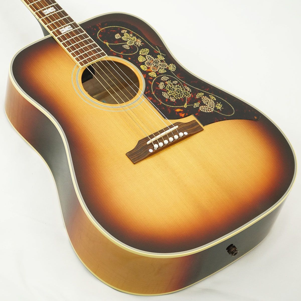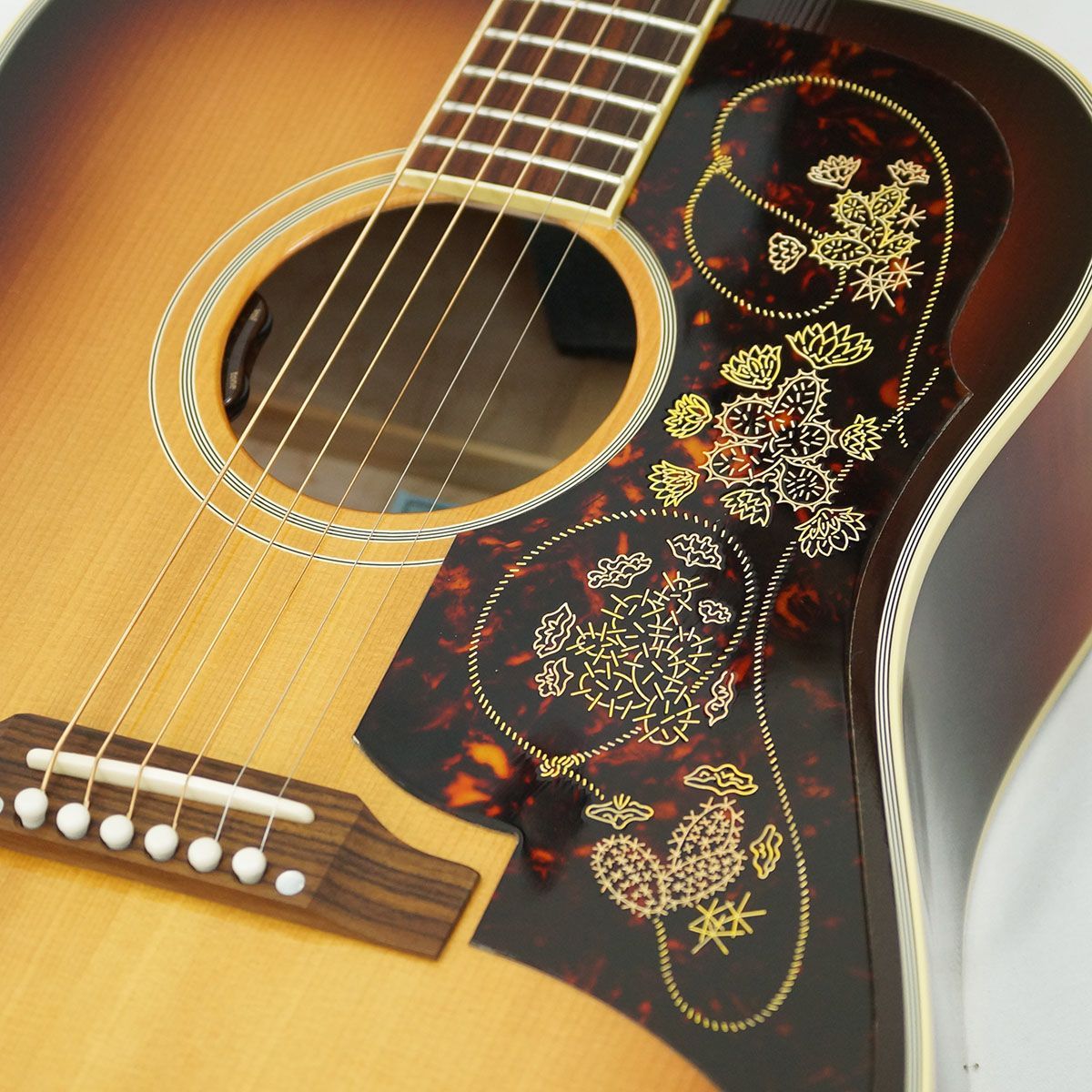単板のシトカ・スプルース・トップ、単板のフィガード・メイプル・バック&サイド、インディアン・ローズウッド指板、伝統的なハンドスキャロップトXブレーシング、金メッキの施されたゴトー・キーストーン・チューナー、「ラリアットとサボテン」をテーマにした象徴的なピックガード、パワフルなトーンを生む25.5インチのロングスケール等、充実の仕様を誇ります。