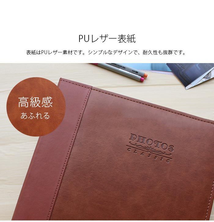 表紙はPUレザー素材です。シンプルなデザインで、耐久性も抜群です。