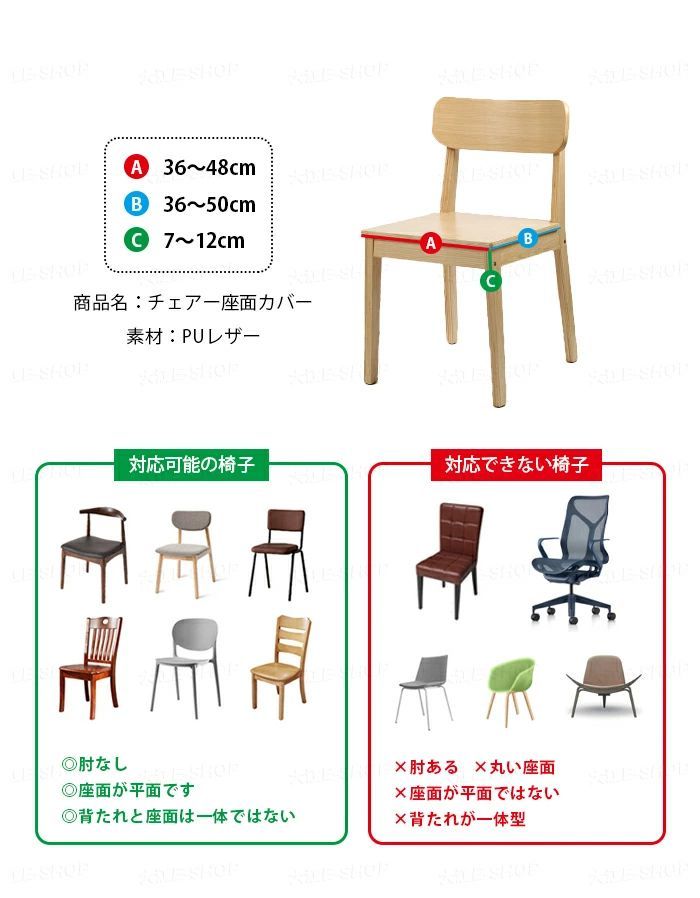 シートクッションの横幅: 36-48cm; シートクッションの奥行: 36~50cm; シートクッションの厚さ: 7~12cm。購入する前に/商品画像の測定ガイドを参照してください。