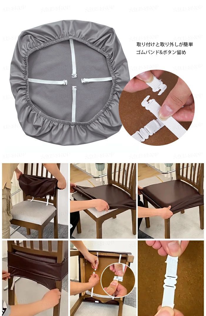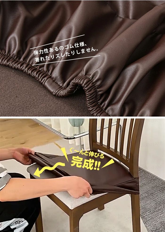 PUレザーの椅子カバーは、ボタンと組み合わせた高弾性タイで設計されています。椅子カバーをシートクッションにそっと置きボタンを留めるだけで、椅子シートカバーは椅子に完全にフィットします。