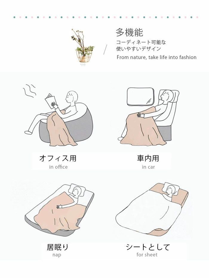 ソファに座ったときにひざに掛けてもお腹から足元まですっぽり包み込んでくれる頼もしいアイテム。