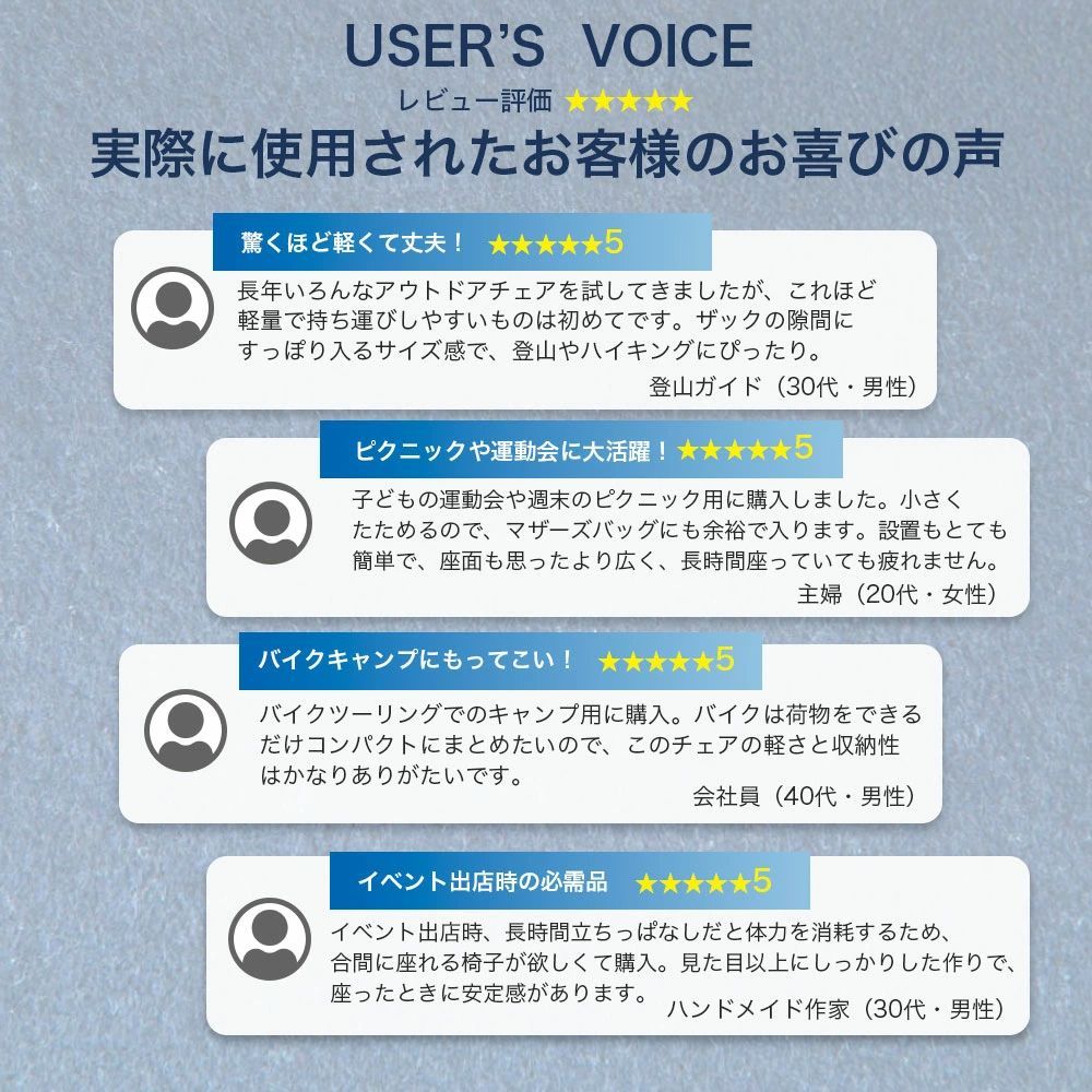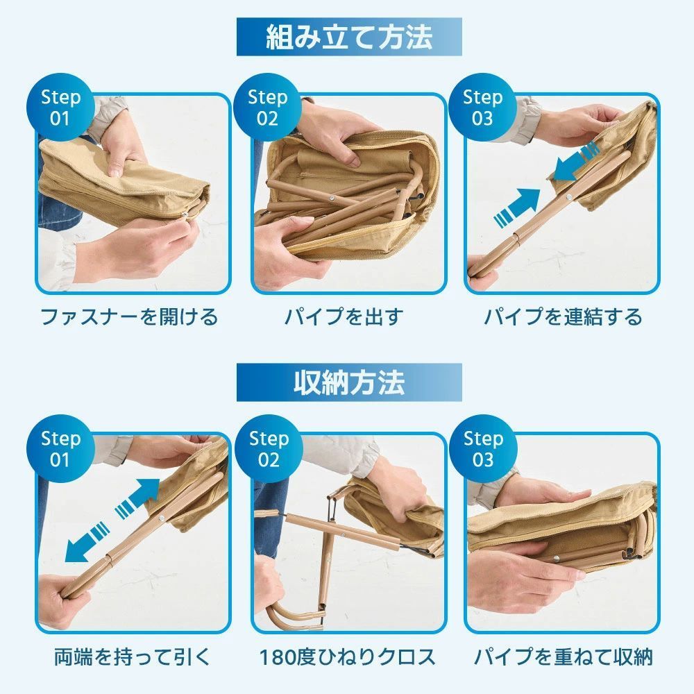 収納袋から出してから、広げるだけで、使用出来ます。折りたたみ椅子として軽量性だけでなく頑丈さも兼ね備えたアウトドアチェアです。