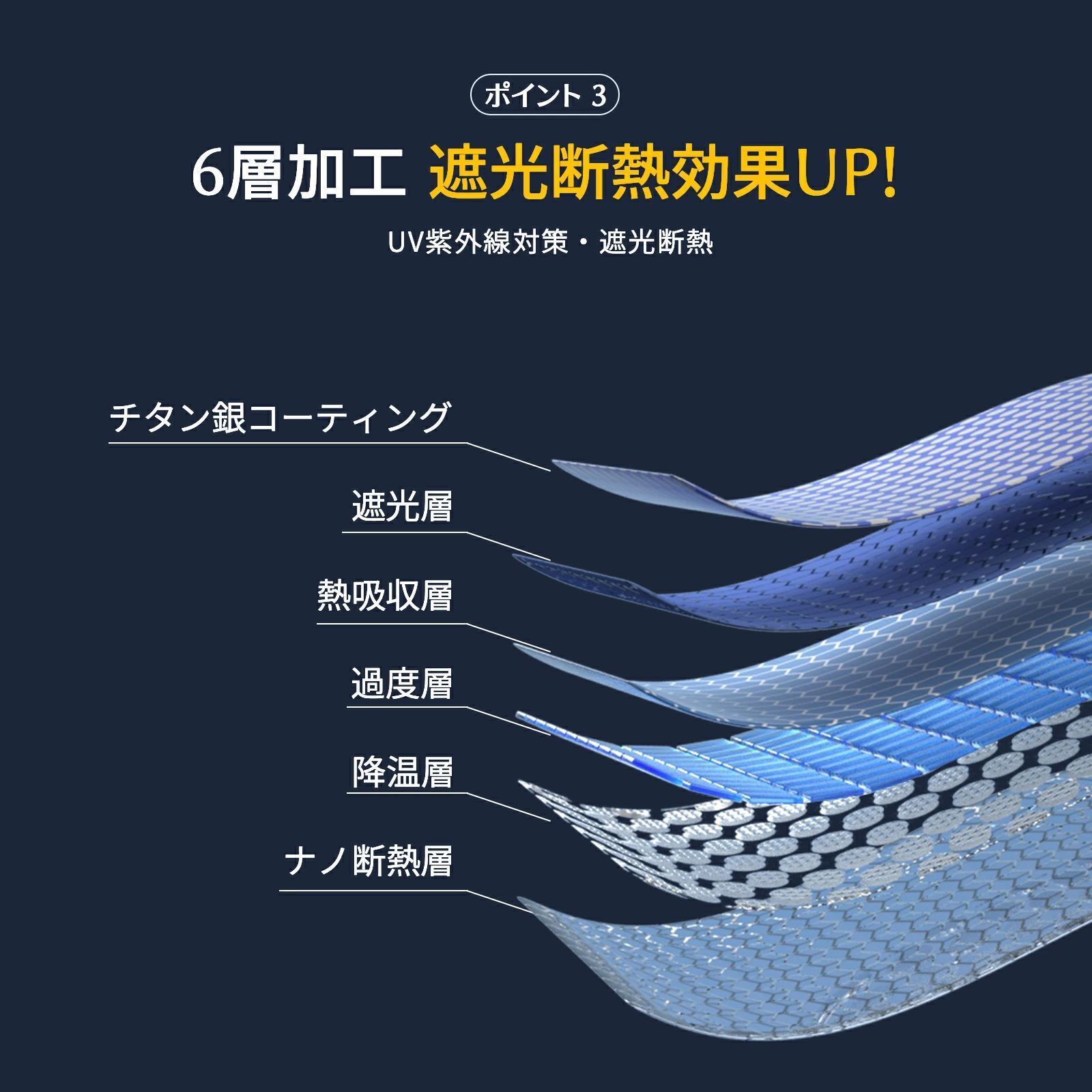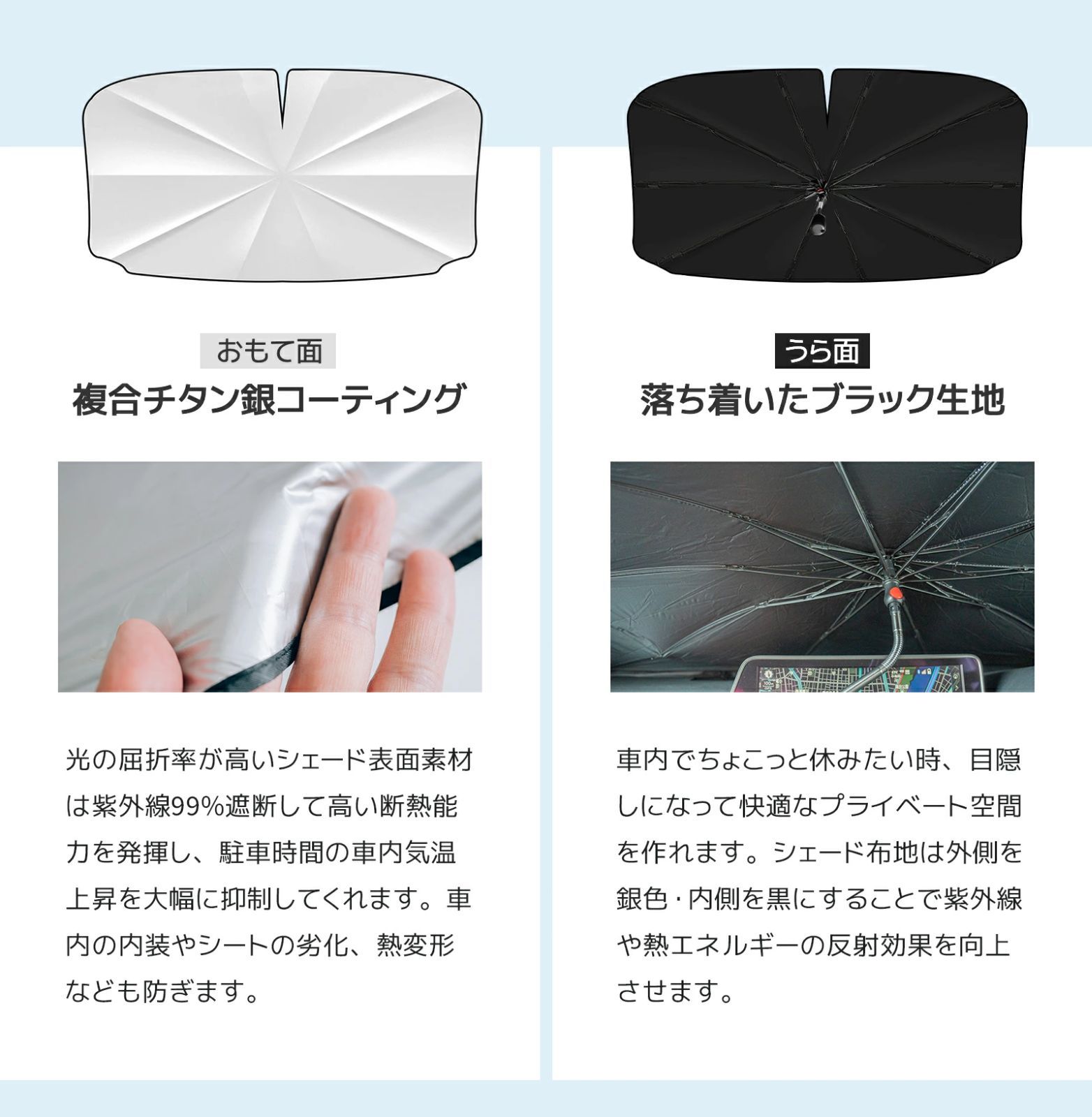 この車用サンシェードは、なんと99%もの紫外線をカットしちゃうんです!高品質のインパクトクロスとチタンシルバー接着剤を使っているから、熱を遮断して太陽光を反射し、車内の温度をグッと下げてくれます。これで、ダメージや経年劣化も防げちゃう!