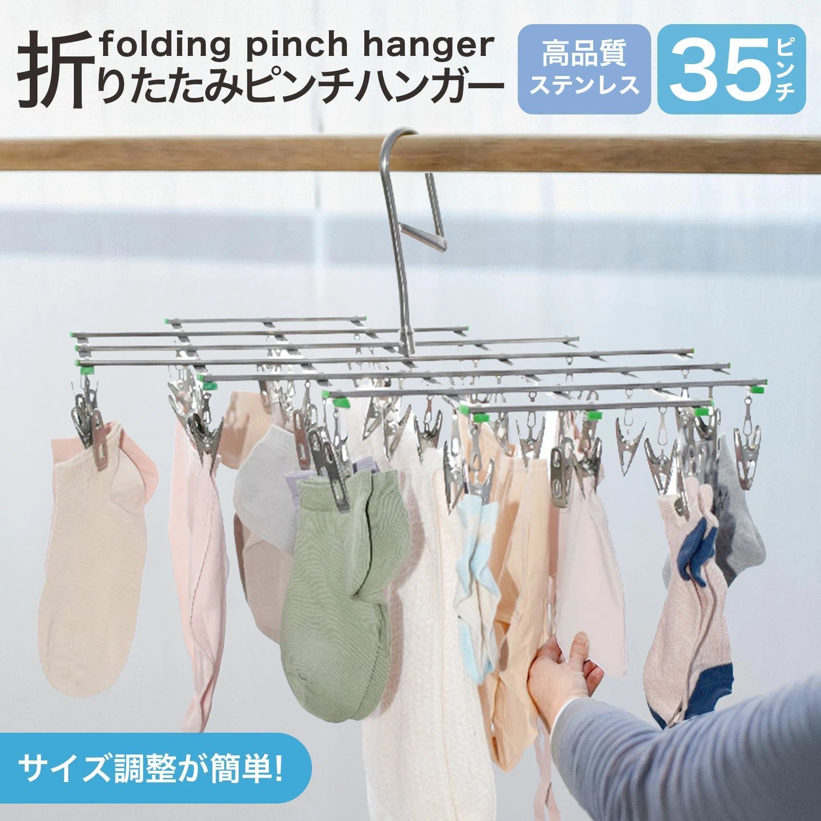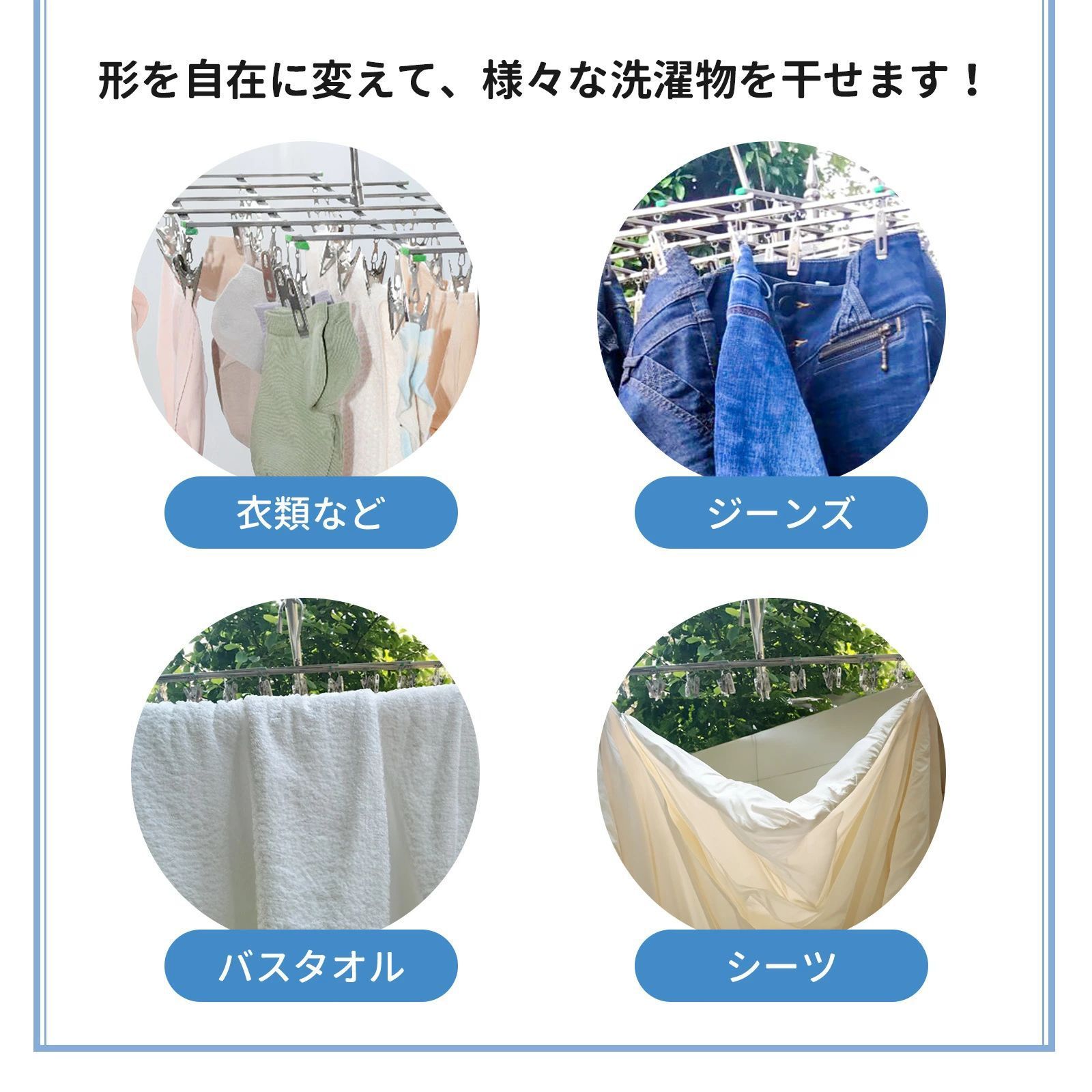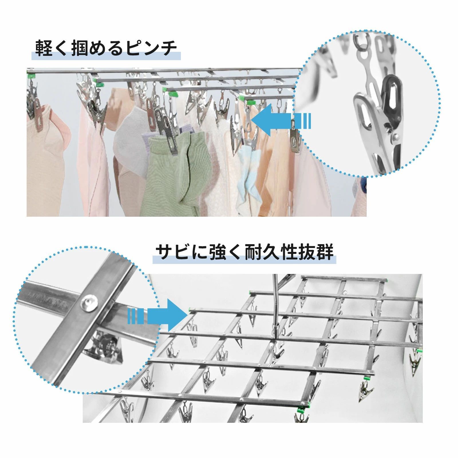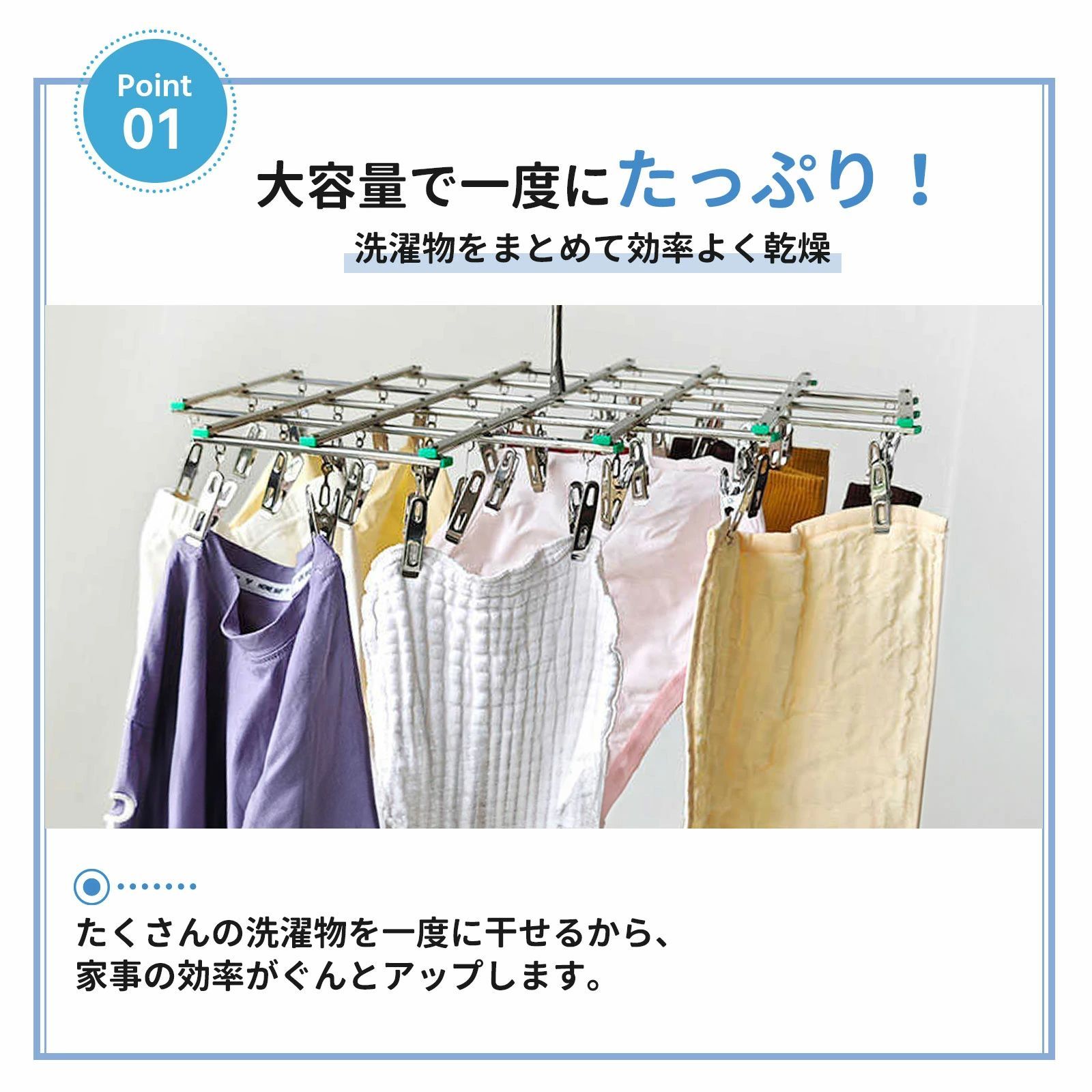 なんと35個もの錆びにくいステンレスピンチを装備!たくさんの洗濯物をまとめて干せる大容量設計。靴下やハンカチから大物まで、これ1台で家族全員の洗濯物をしっかりホールド