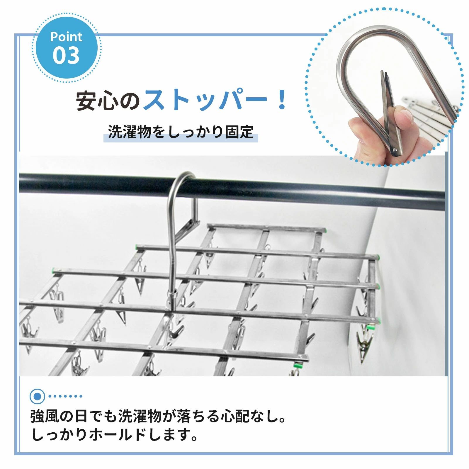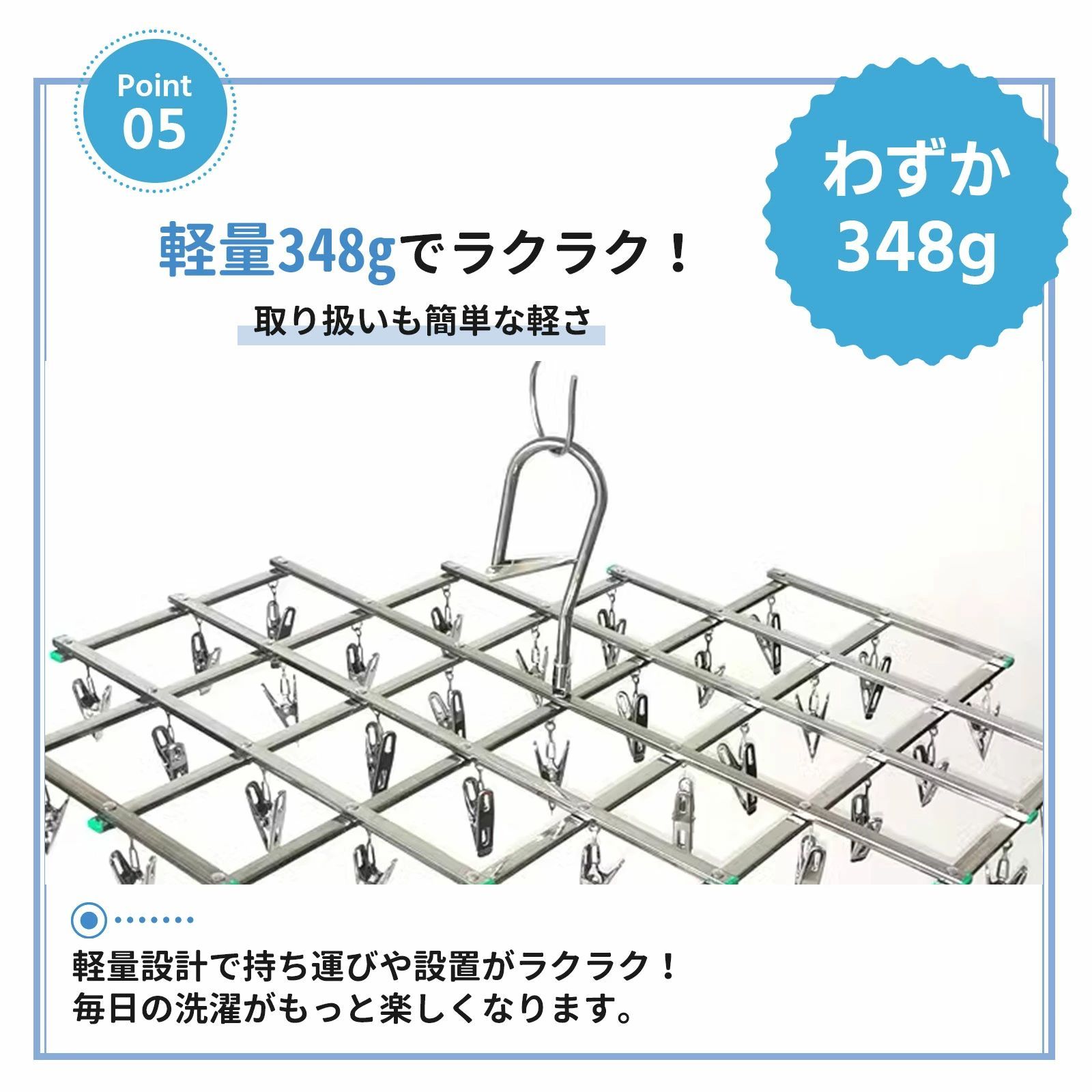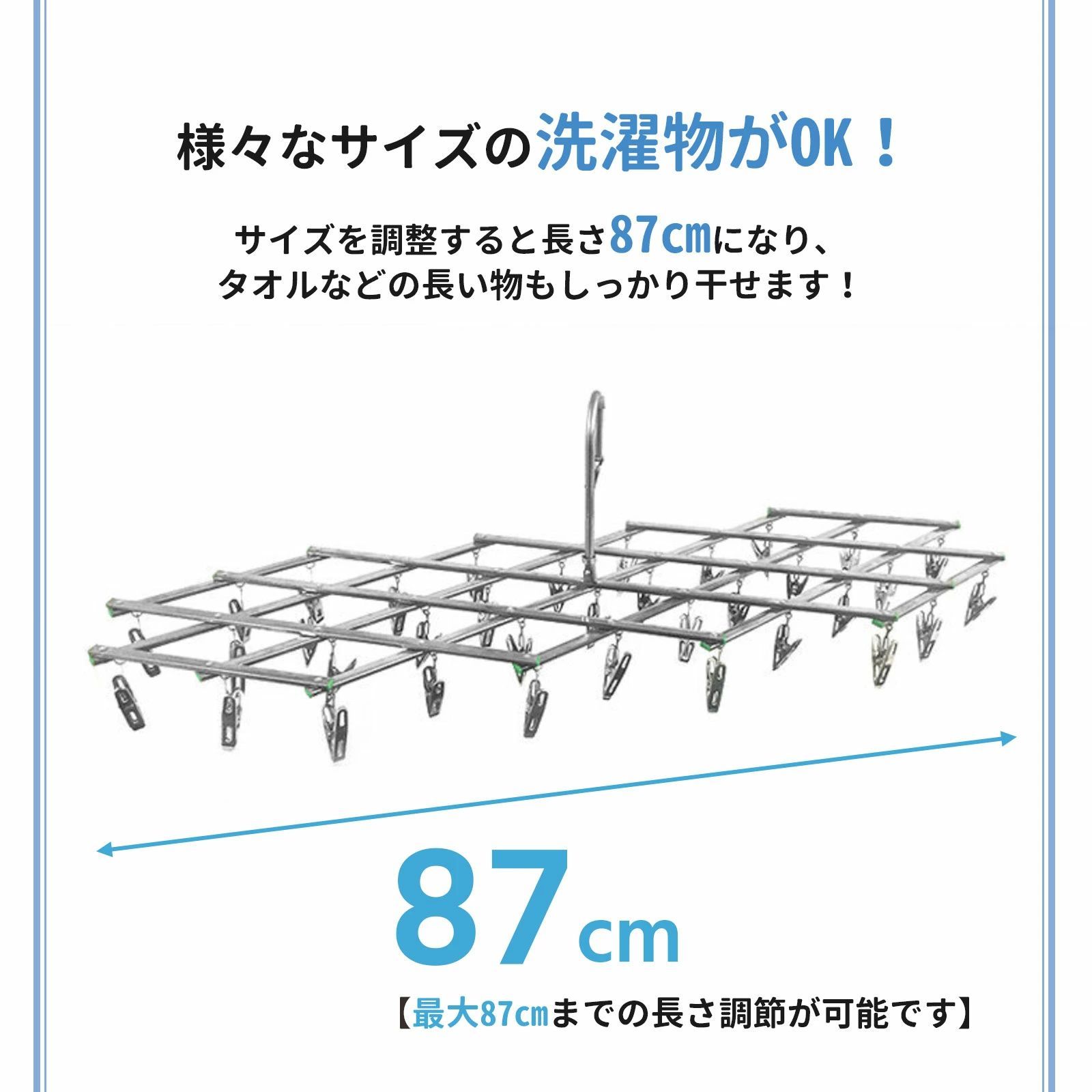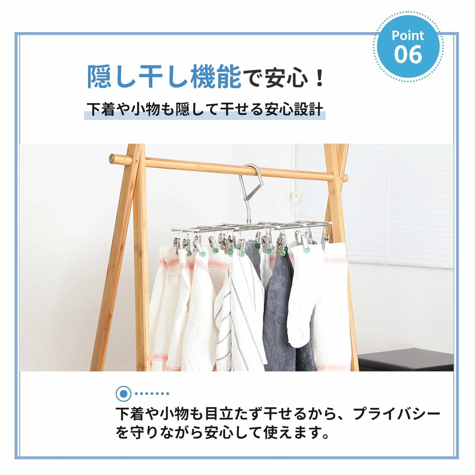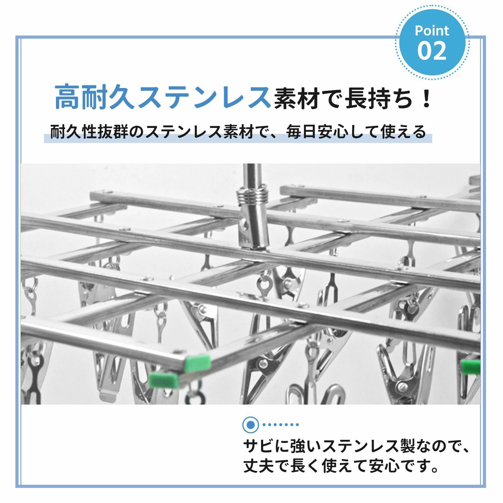 なんと35個もの錆びにくいステンレスピンチを装備!たくさんの洗濯物をまとめて干せる大容量設計。靴下やハンカチから大物まで、これ1台で家族全員の洗濯物をしっかりホールド