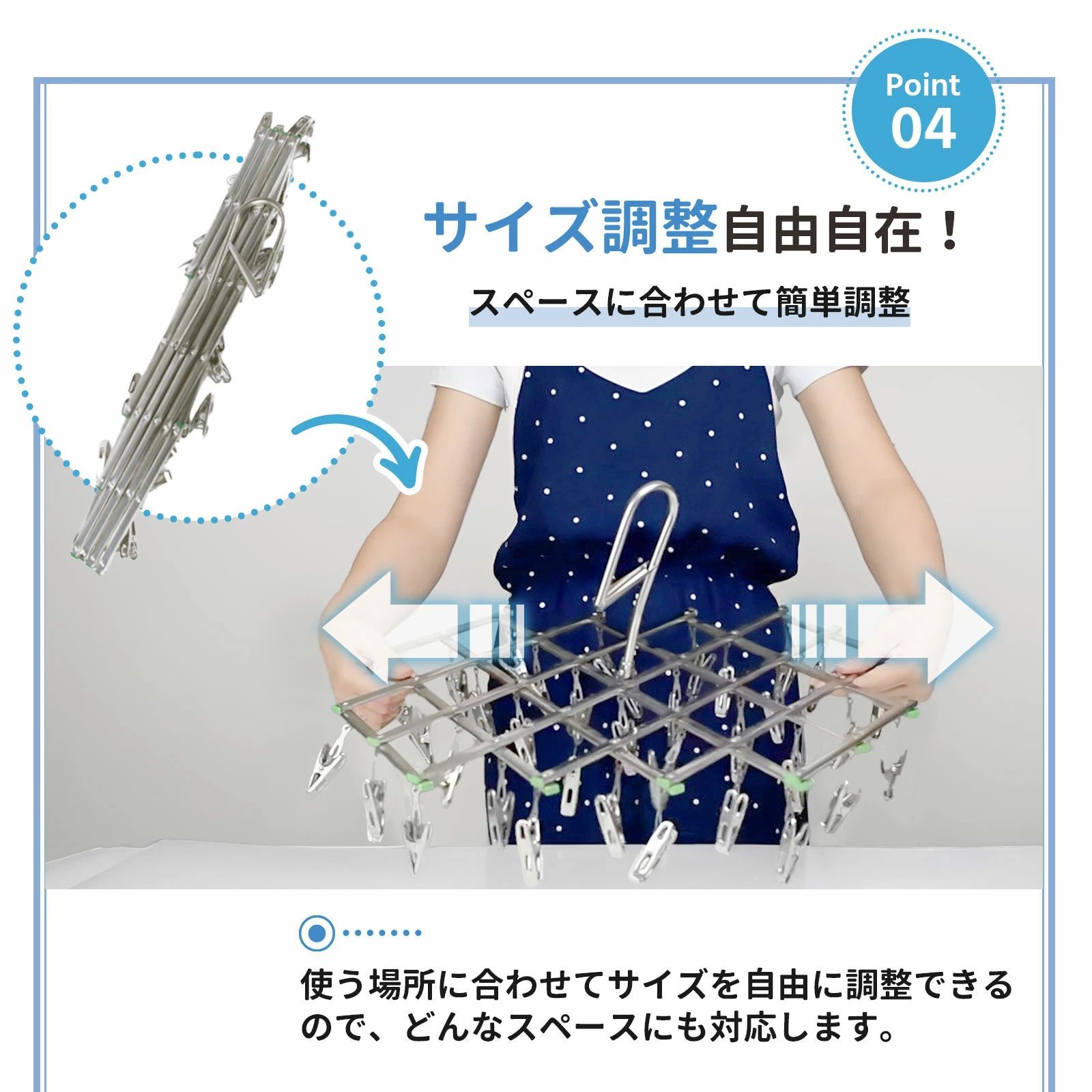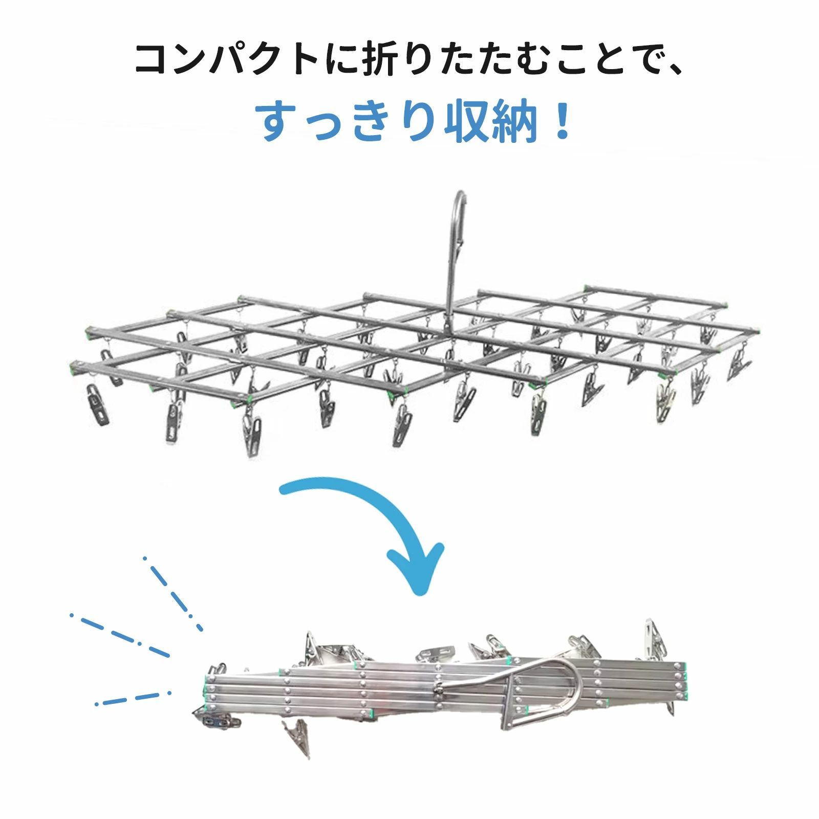 高品質ステンレス製の折りたたみ式ハンガー!自由自在に伸縮できるので、お好みの形状にアレンジ可能。様々な洗濯物に対応する便利な多機能設計で、毎日のお洗濯をもっと快適に