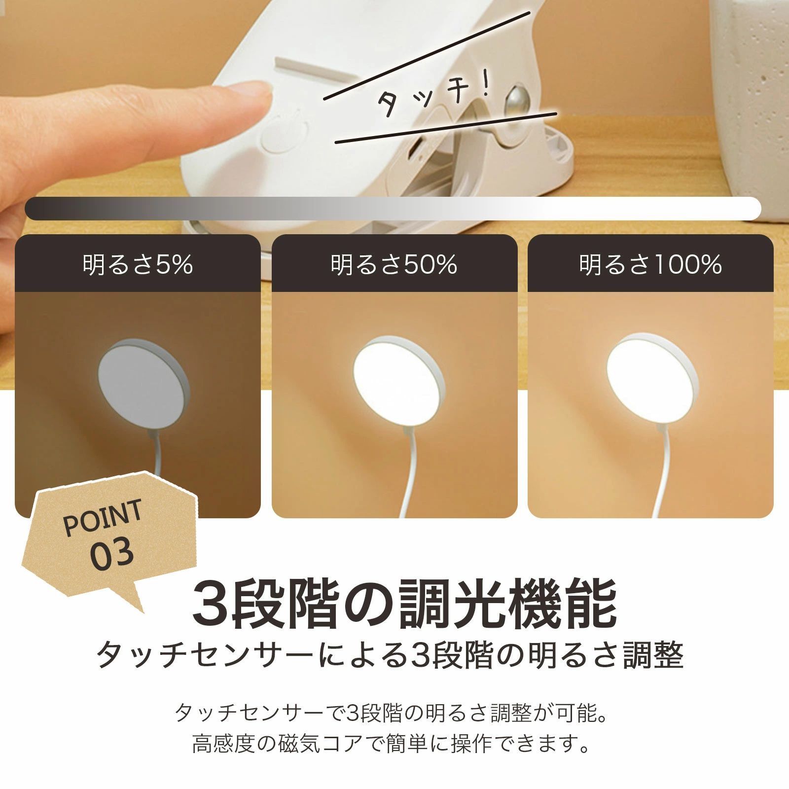 タッチセンサーによる3段階の明るさ調整が可能で、高感度の磁気コアを使用した簡単な操作で、ユーザーのニーズに合わせて明るさを調整できます。