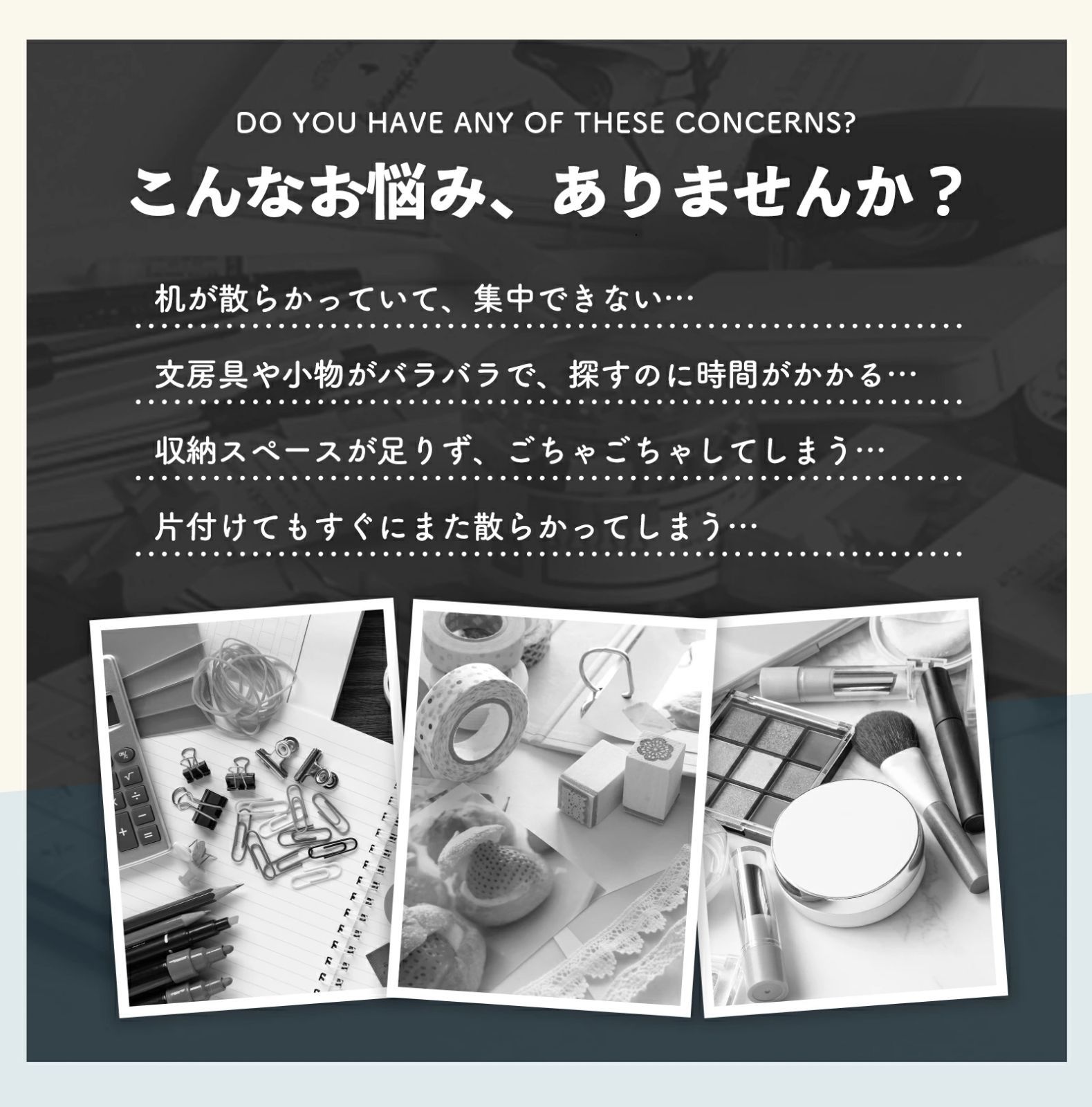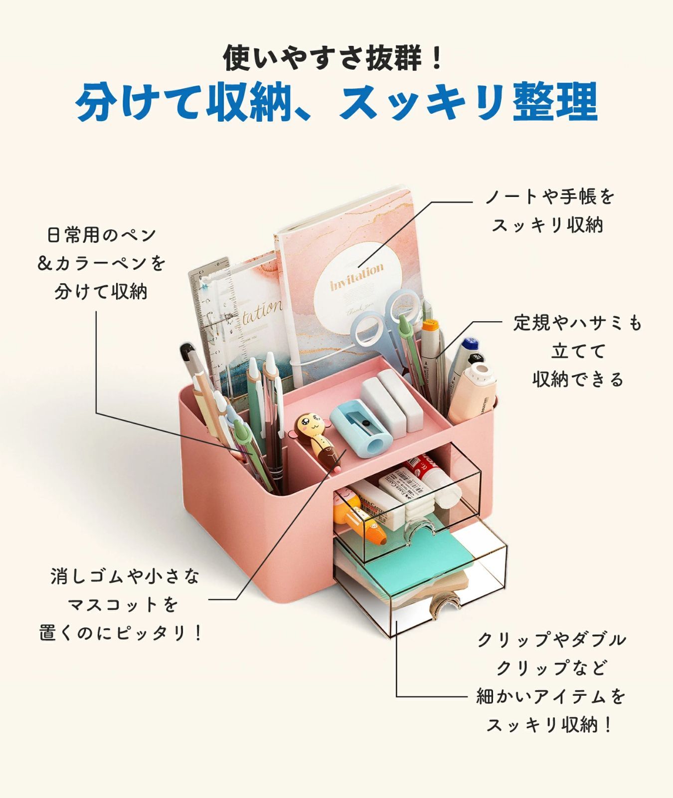 文房具だけでなく、メイク用品、アクセサリー、工具など幅広い用途で使用可能!日常生活のあらゆる収納ニーズに対応します。
