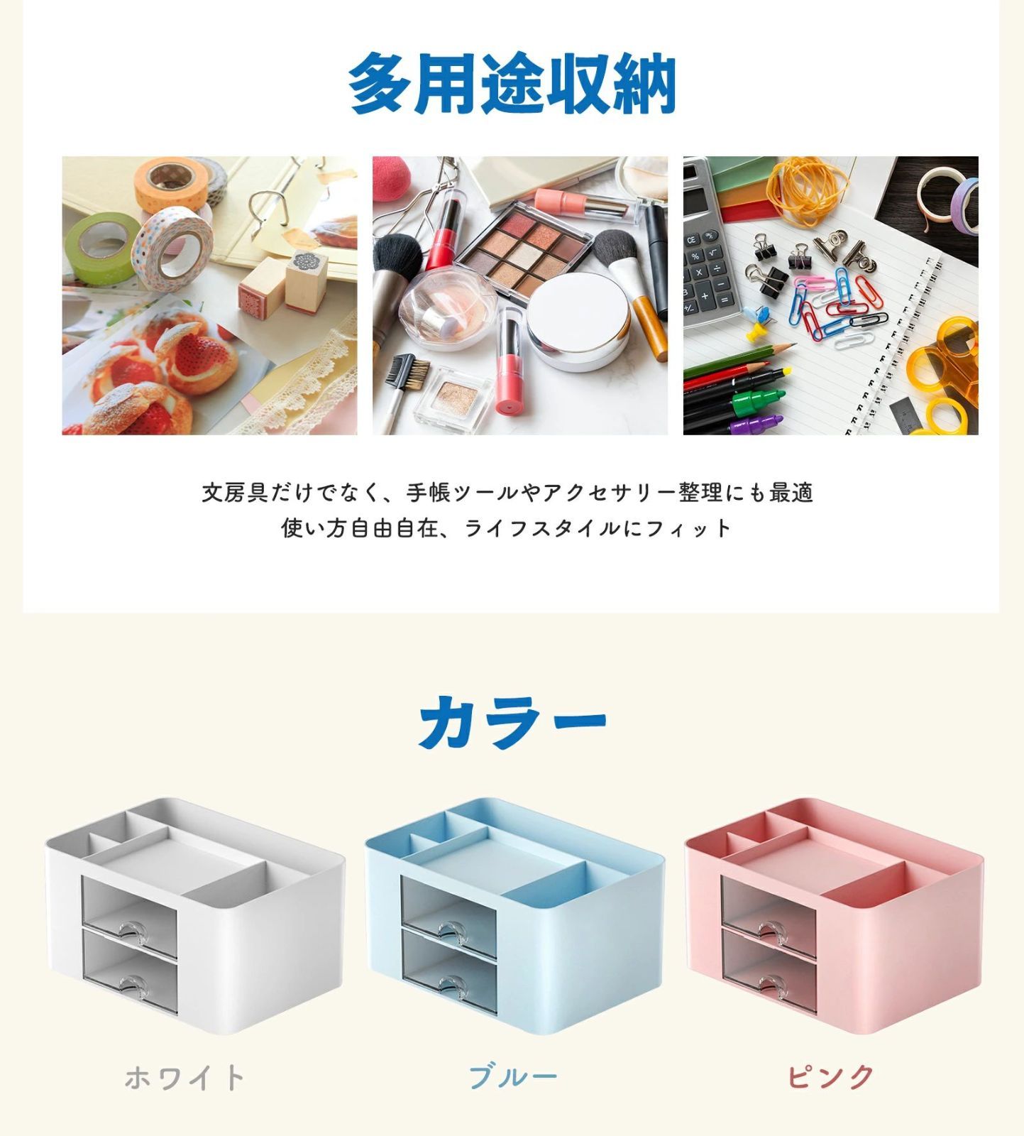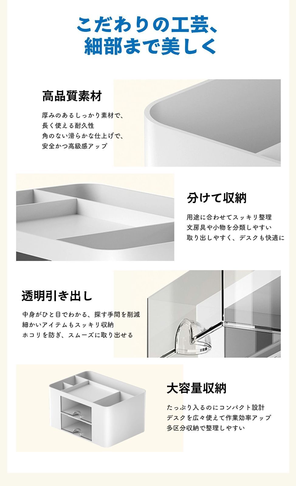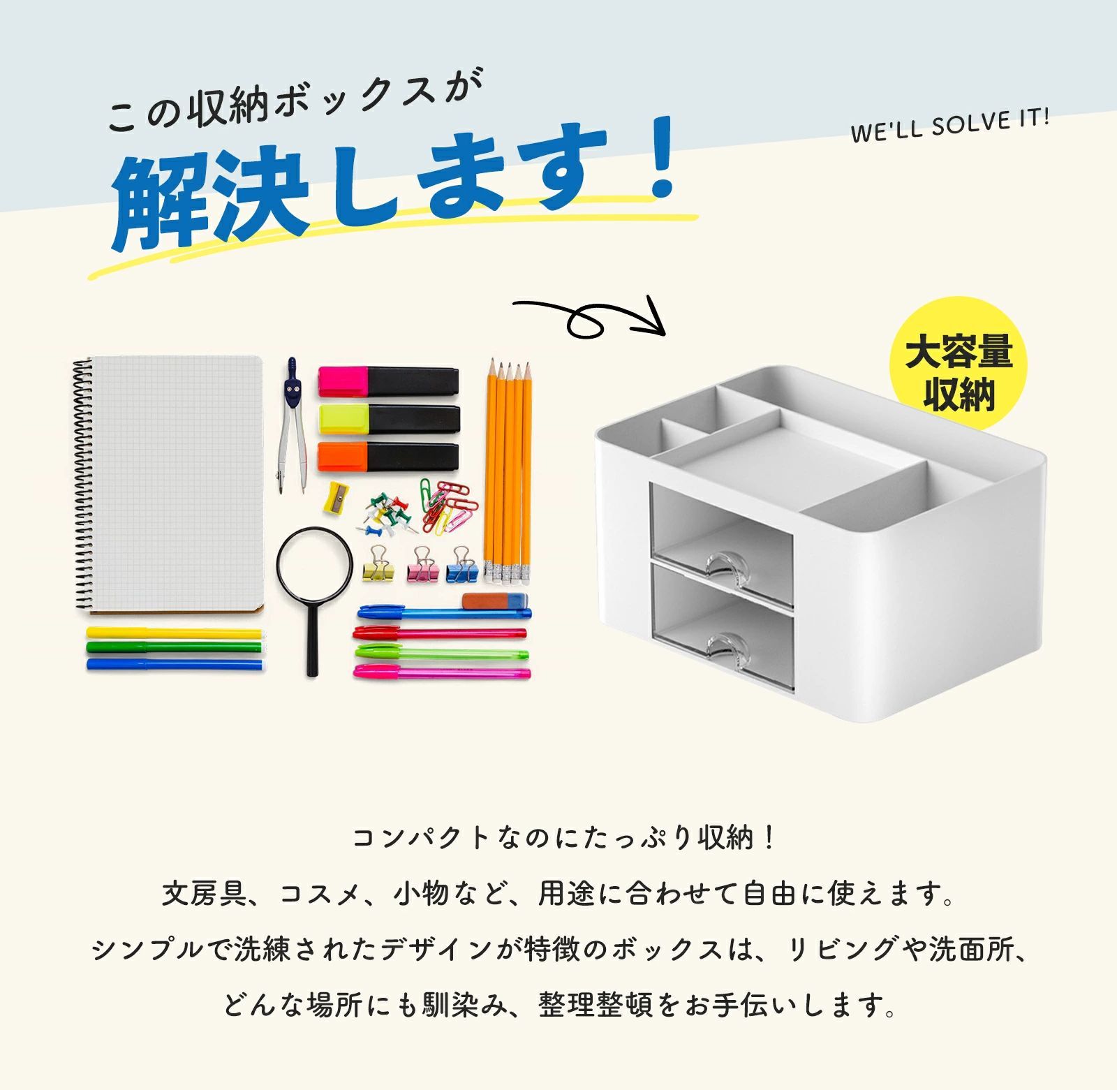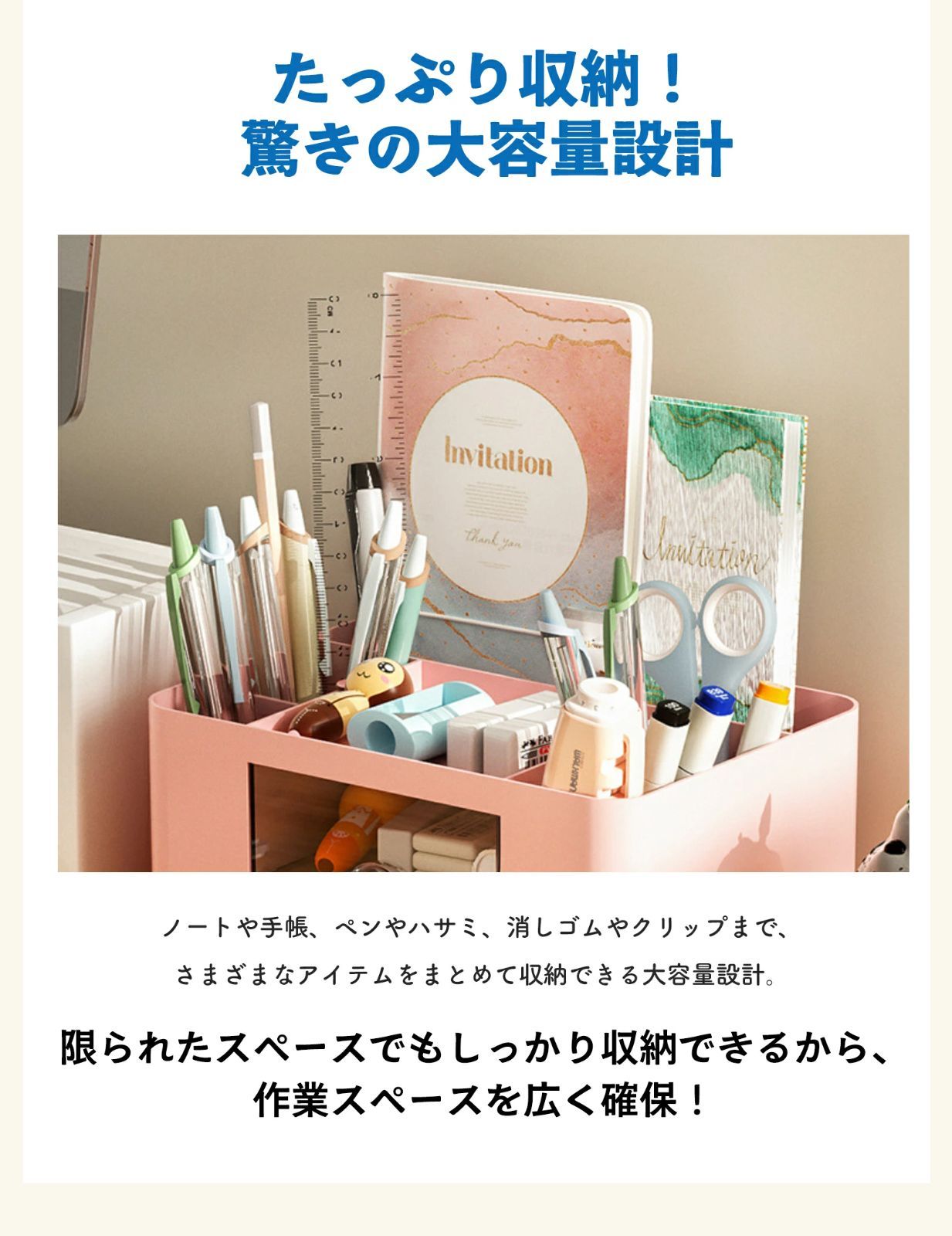 文房具、小物、コスメなどをスッキリ収納!広々としたメインスペースに加え、細かいアイテムも収納できる引き出し付きで、デスク周りを美しく整理できます。