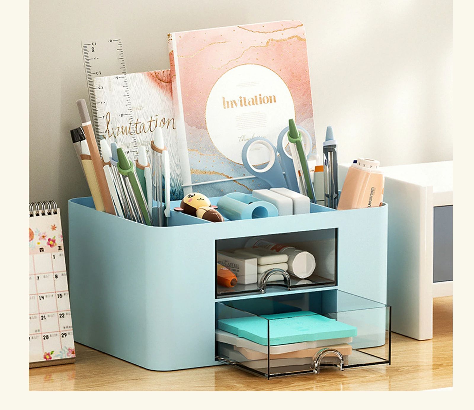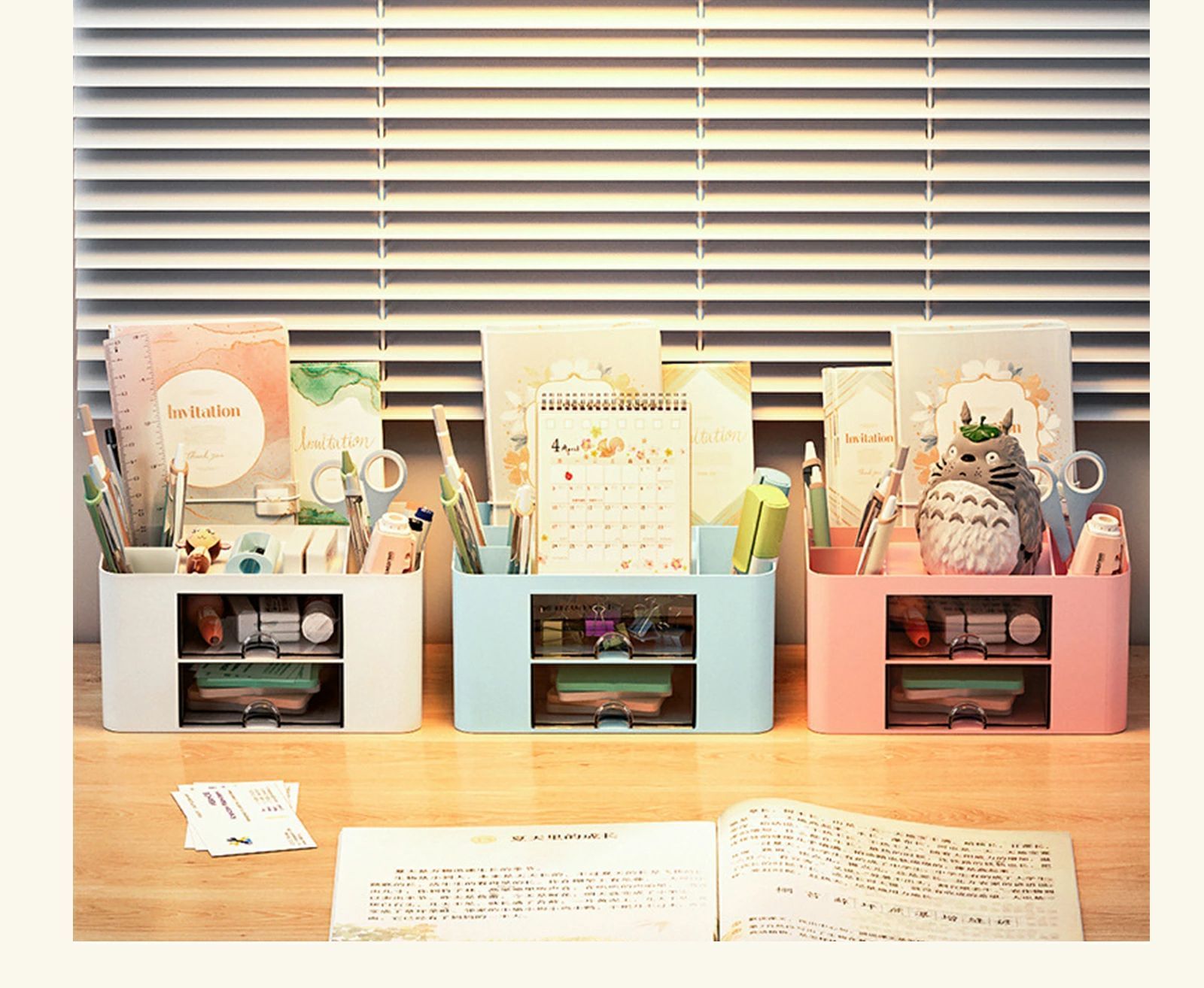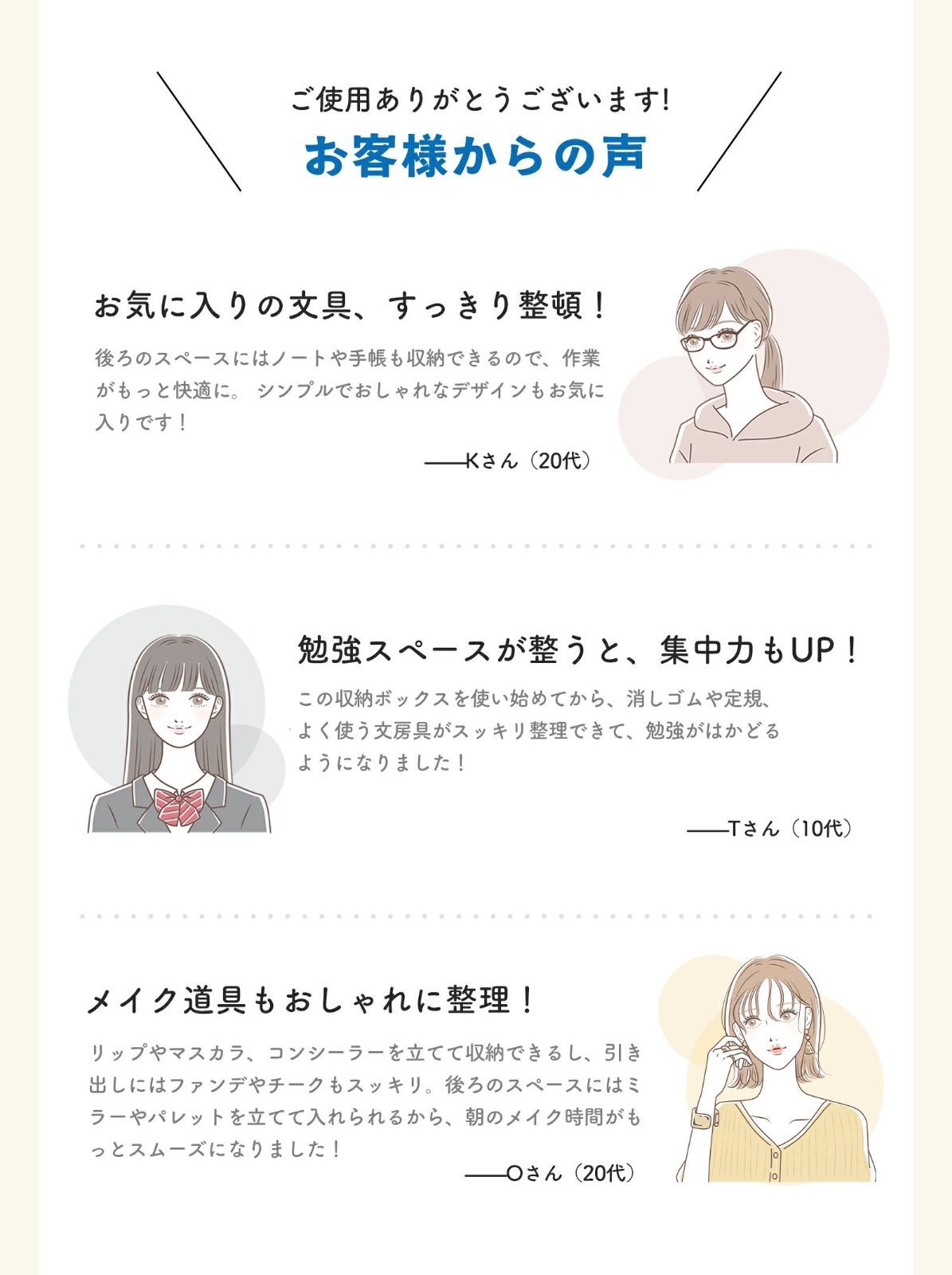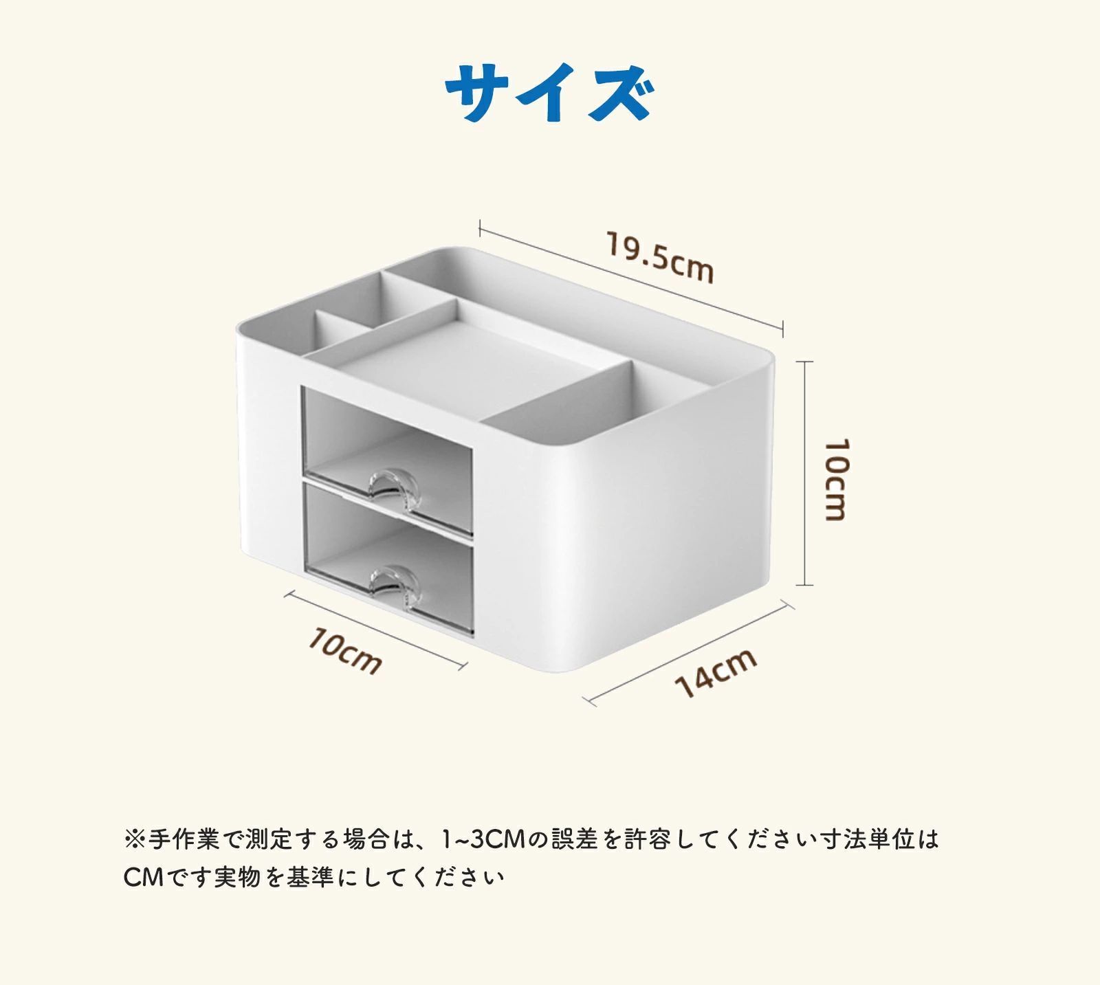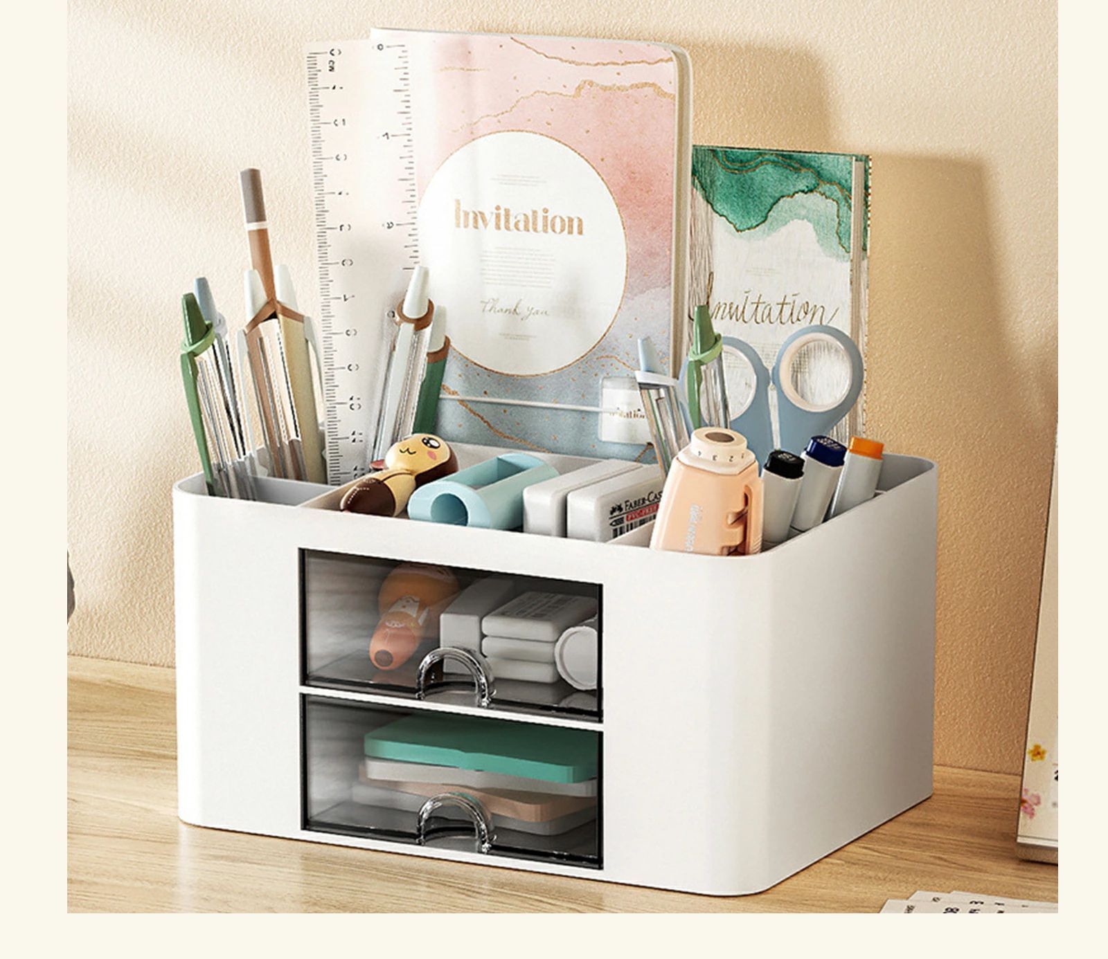 文房具、小物、コスメなどをスッキリ収納!広々としたメインスペースに加え、細かいアイテムも収納できる引き出し付きで、デスク周りを美しく整理できます。