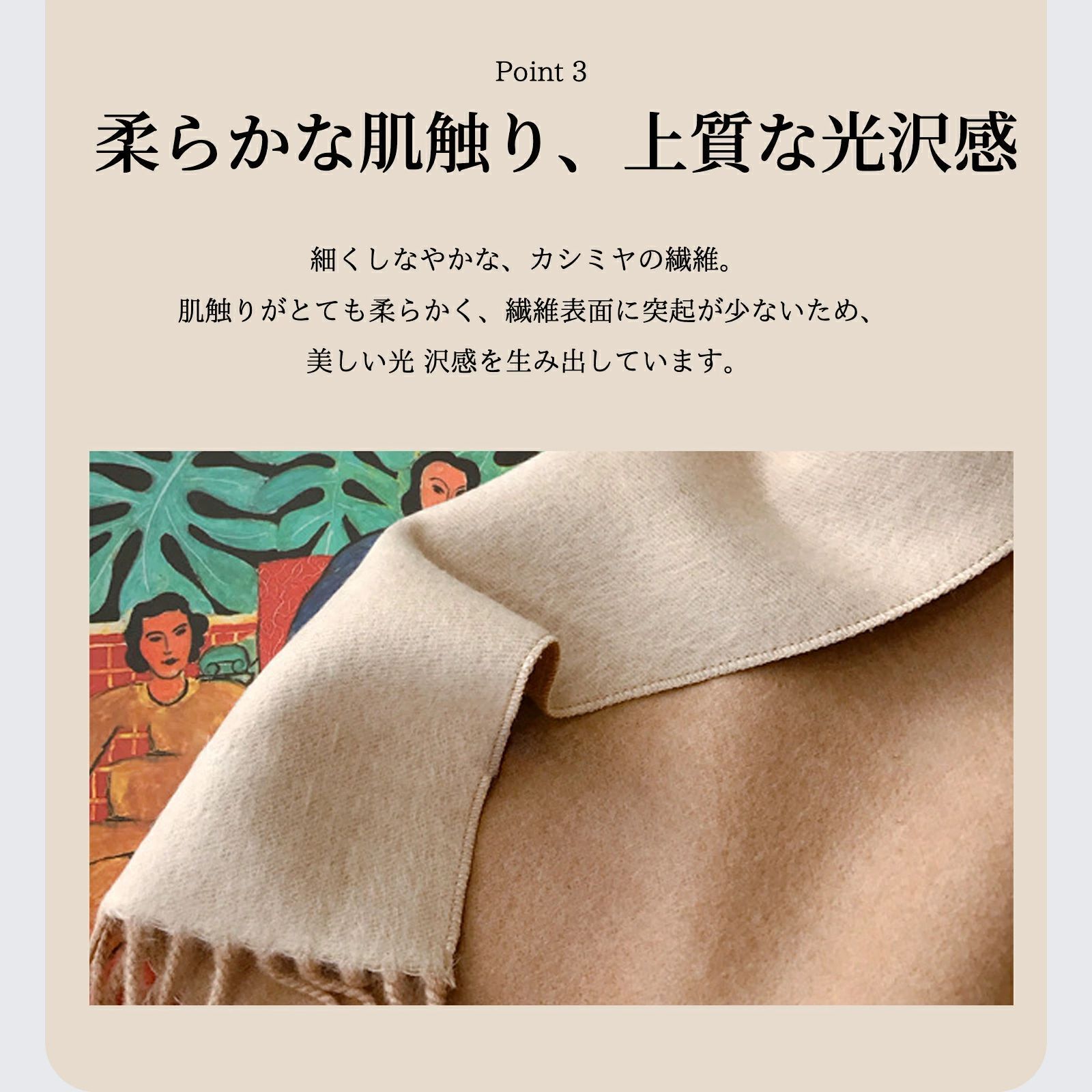 マフラーは。繊維の密度が高いので、薄手で軽いのに暖かくしっとりとした優しい肌触りに仕上がっています。保温性・保湿性に優れており、とても暖かな着け心地で寒い時期にぴったりです。ふんわり柔らかな手触りと上品な光沢が魅力的な素材、他素材とは別格の高級感を兼ね備えております! 大人の着こなしを格上げするアイテムとして役立ってくれます。サラッと巻くだけでもおしゃれに決まります。