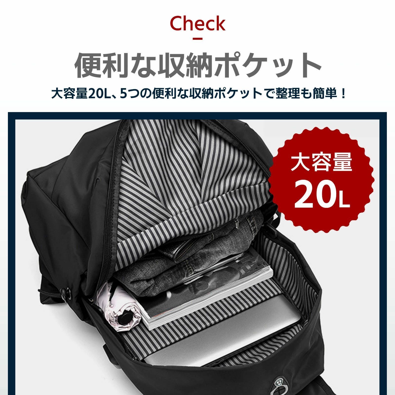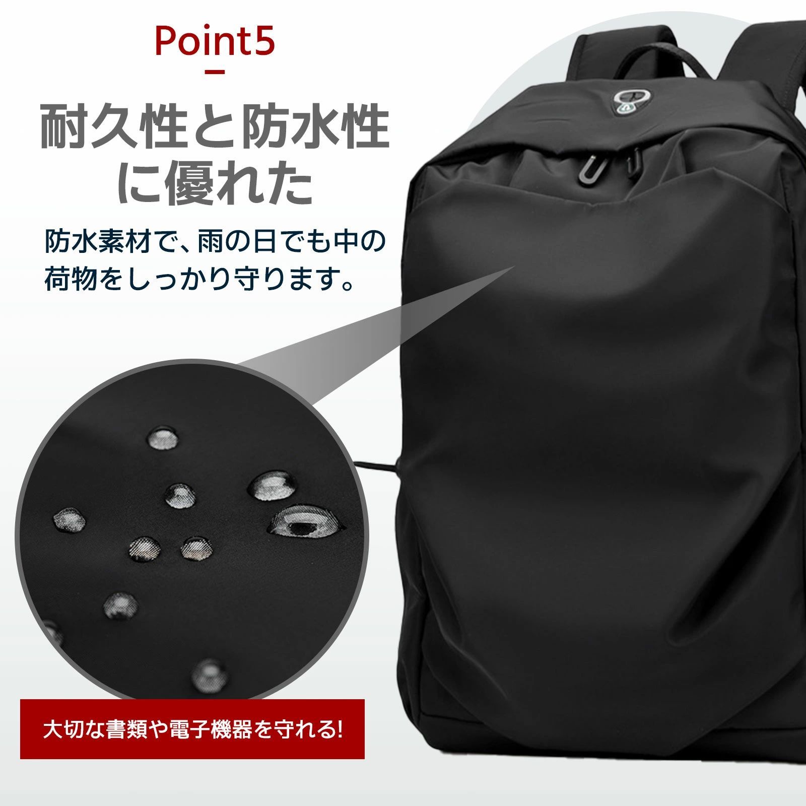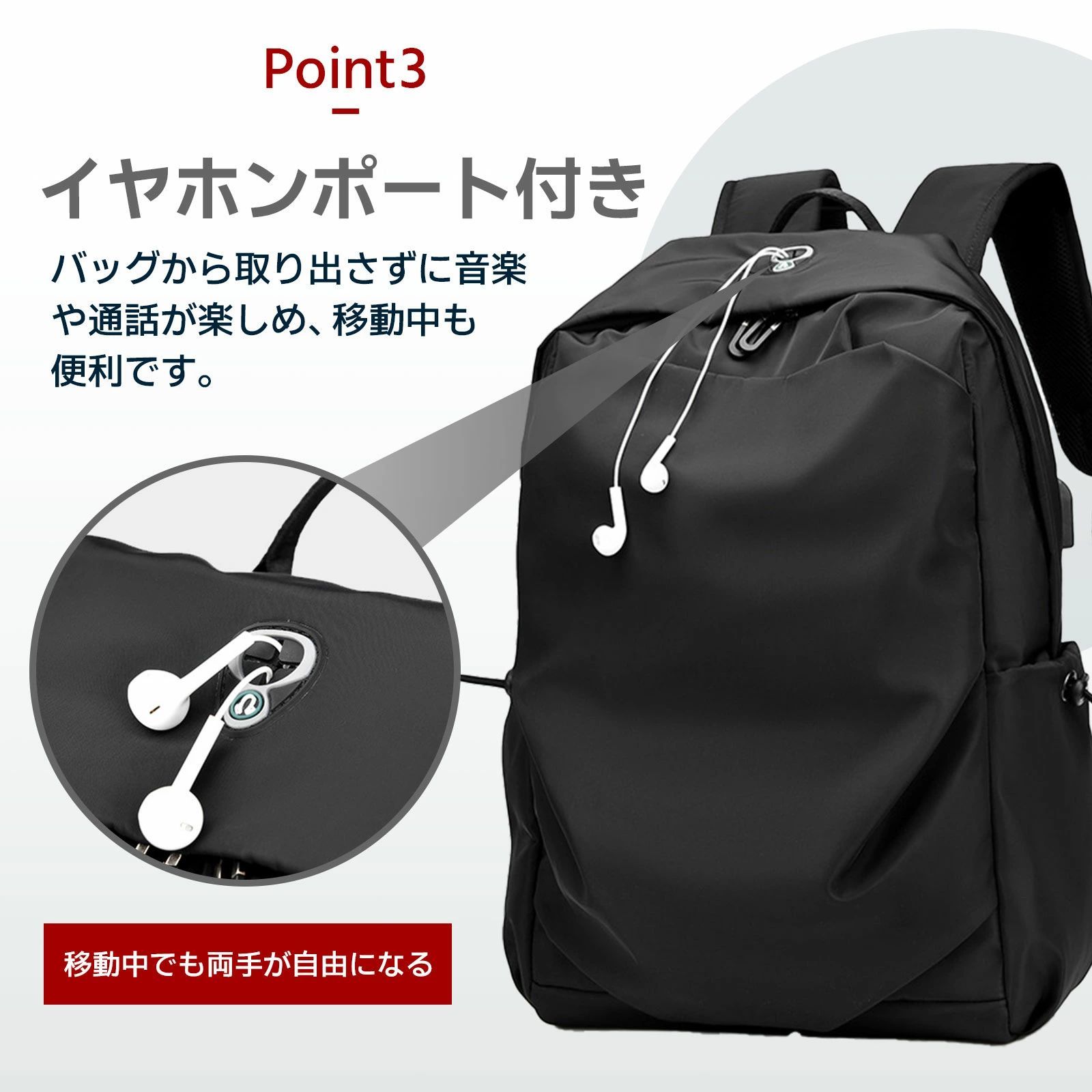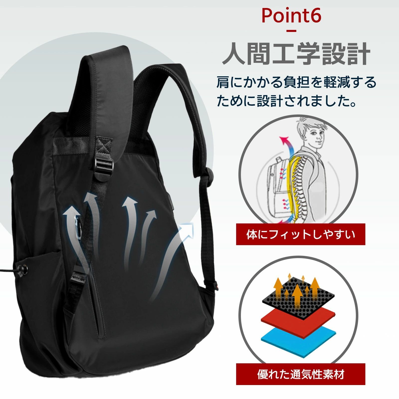 軽量設計ながら、驚くほどの収納力を誇ります。A4サイズの書類はもちろん、ノートPC、分厚い教科書、折りたたみ傘、着替え、ペットボトル、お弁当箱など、日常生活に必要なあらゆるアイテムを余裕で収納。重量物を入れても、背負い心地の良さは変わりません。通勤、通学、旅行、出張など、様々なシーンで活躍します。さらに、サイドに搭載されたUSB充電ポートにより、移動中でもスマートフォンの充電が可能。急な電池切れの心配もありません。