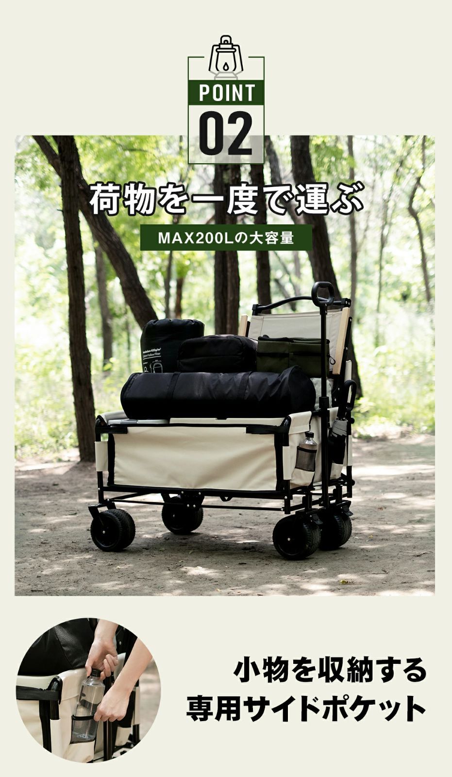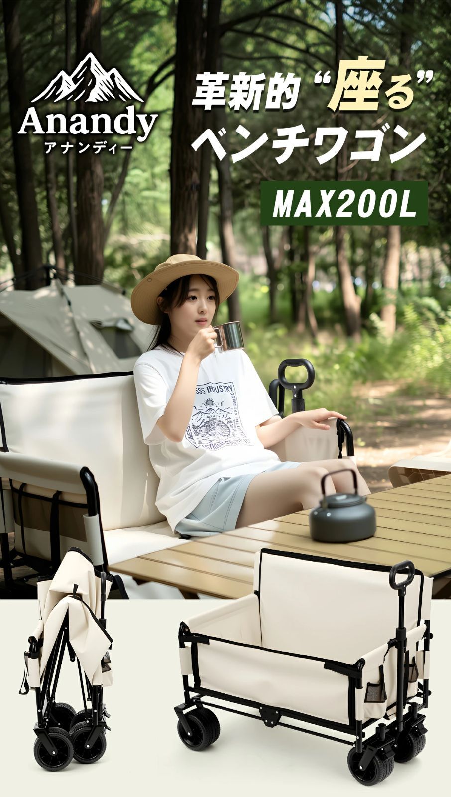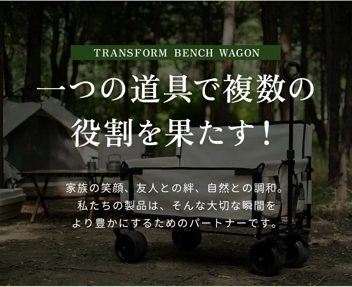 アウトドアワゴン ベンチになる便利ワゴン 大容量 200L 耐荷重 200kg ソロキャンプ ブレーキ付き 極太タイヤ ワイドタイヤ キャンプ用品 outdoor wagon 大人気 防災 避難 災害