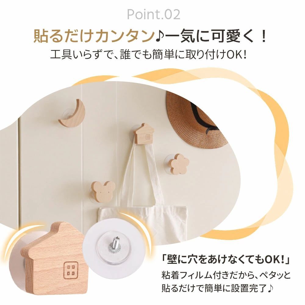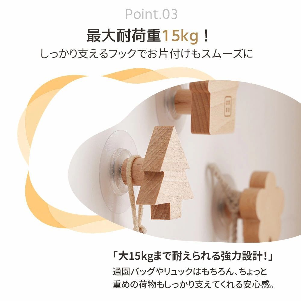 強力粘着でしっかり固定、最大5kgまで対応。バッグやコート、タオルなどの収納に最適。