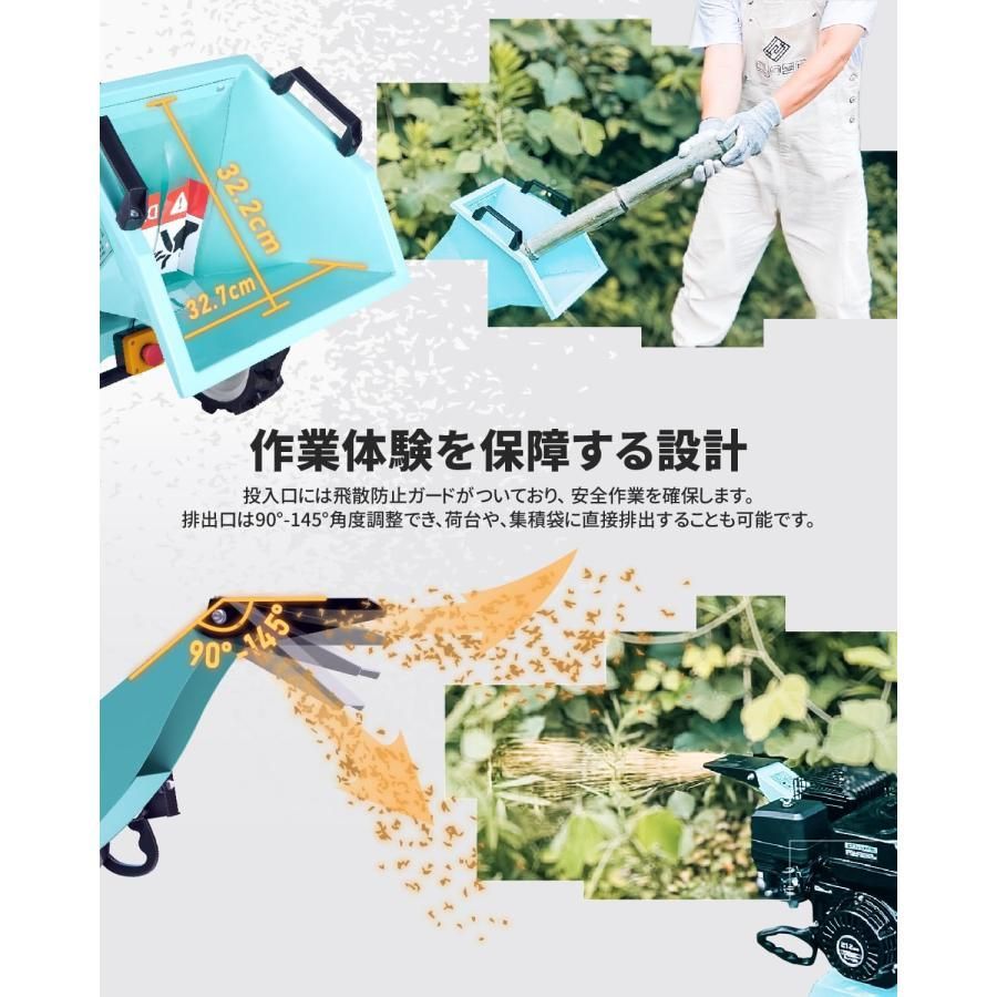 【排出角度を自由に変更】必要に応じて好きな角度や向きが変えられます。排出口が145°転換可能のため、遠くへ飛ばしてトラック荷台に直接排出することや、そのまま肥料散布をすることができます。kareyou専用収納袋(別売り)もっと便利だと思います。また集積袋に集められる粉砕物はゴミ処理にラク、燃料にも役に立ちます。排出したいところへ飛ばせます!
