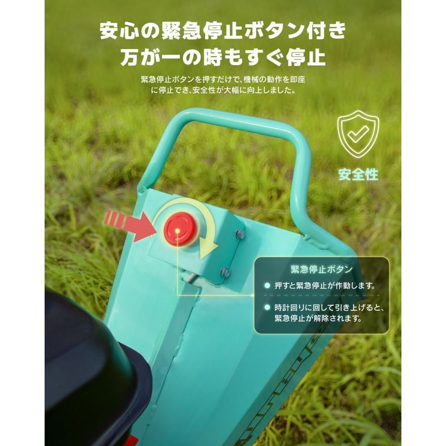 【安心設計&わかりやすい警告表示で安全作業をサポート】作業中の事故を未然に防ぐため、COY-380は安全カバーや警告ラベルを本体の各所に配置。回転部には二重構造の保護カバーを採用しており、手や衣類の巻き込みを防止します。また、注意事項が視覚的に分かりやすく表示されているため、初めてウッドチッパーを使う方でも安心して作業が可能です。