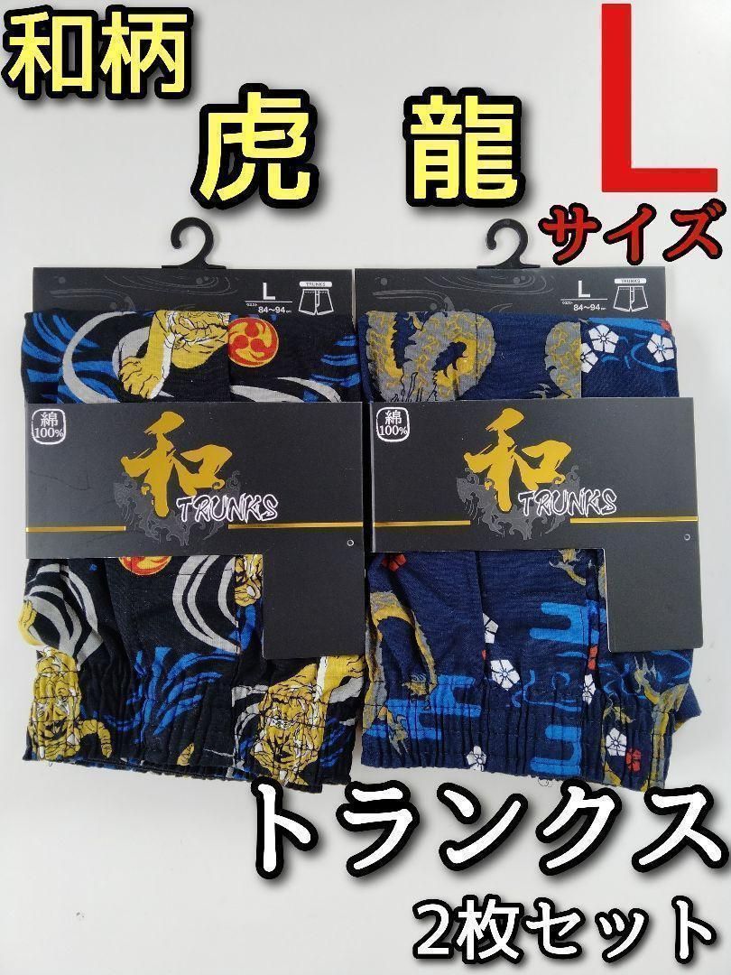 メンズ 男 男の子 トランクス パンツ 下着 インナー Lサイズ 綿 コットン 和 和風 和柄 2枚 2枚セット 二枚 二枚セット 虎 龍 プレゼント ギフト