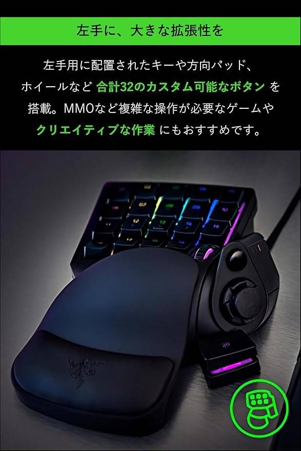 Razer Tartarus V2は、MMORPGなどの多ボタン操作を快適にする左手デバイスです。
