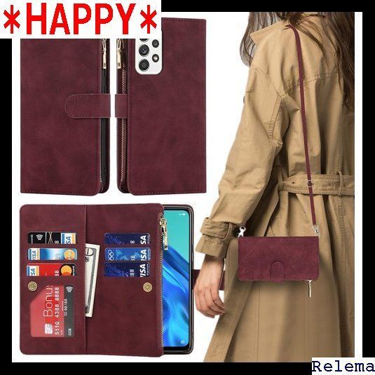 Galaxy A52 5G ケース 手帳型 ショルダー クロスボディ SC-53B ケース doo 対応 サムスン ギャラクシー A52 5G カバー A52 ケース galaxy SC53B ケース A525G スマホケース A52ケース 手帳型 適用 case iCoverCase ストラップホール付き カード収納 バッグ マグネット 留め具 肩がけ 首掛け 斜め掛け カードケース ファスナー型 ストラップ付き カバー ショルダーケース クロスボディケース カード入れ スマホケース 携帯カバー ワインレッド 1402