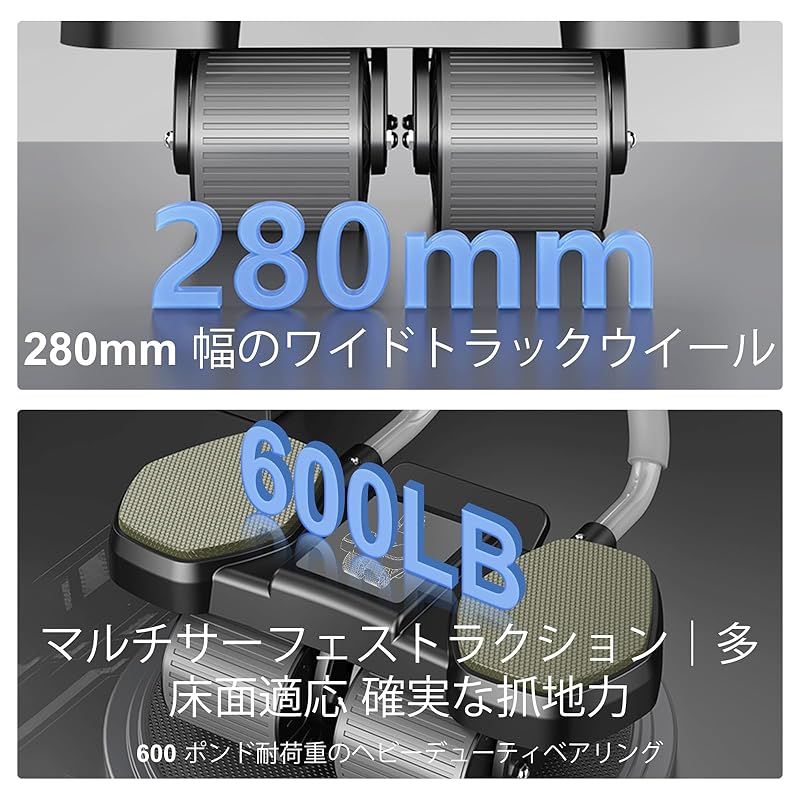 【安定&耐久性設計】頑丈な4輪幅のベースを備えた高品質の素材で作られたこの腹筋ローラーは、あらゆるフィットネスレベルのユーザーに卓越した安定性、滑らかな動き、信頼できる安全性をし、自宅でのトレーニングに信頼できる選択肢です。