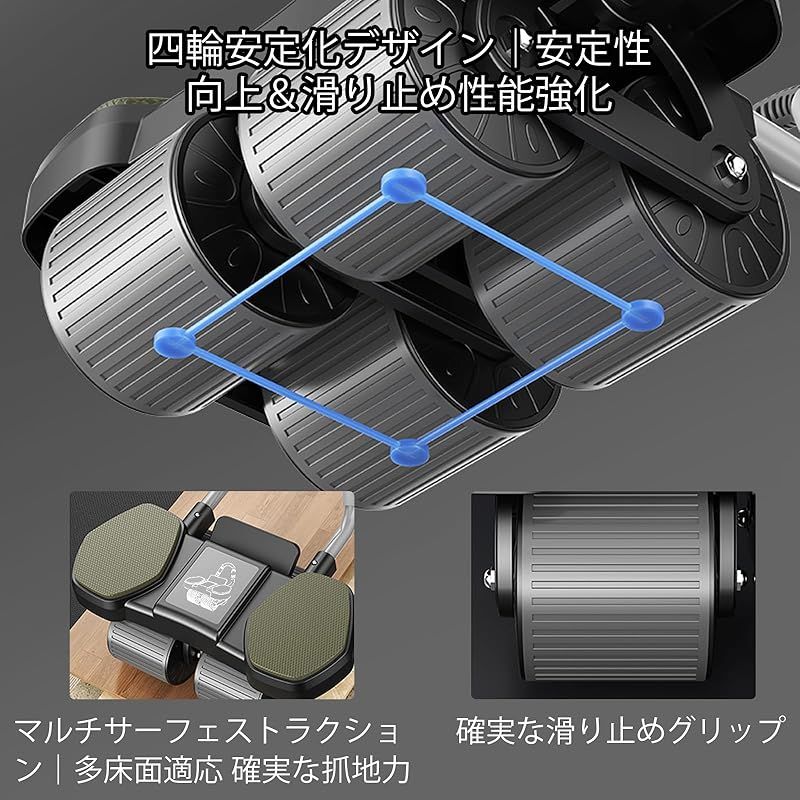 商品名:腹筋ローラー Abローラーホイール 肘サポート付き 4輪デザイン 腹筋と体幹を強化するコアトレーナー 丈夫で軽量 男女兼用 ホームフィットネスに最適