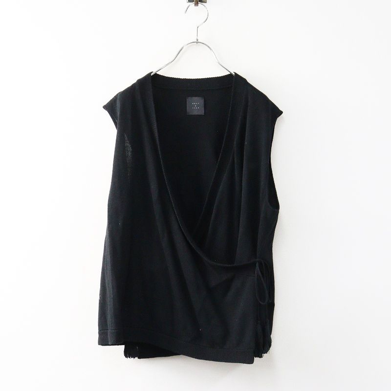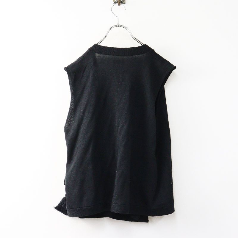 【品名】オオカミとフクロウ TANDEY オカミとシロツメグサの花冠 カシュクール ニットベスト‖ブラック トップス ジレ フリンジ