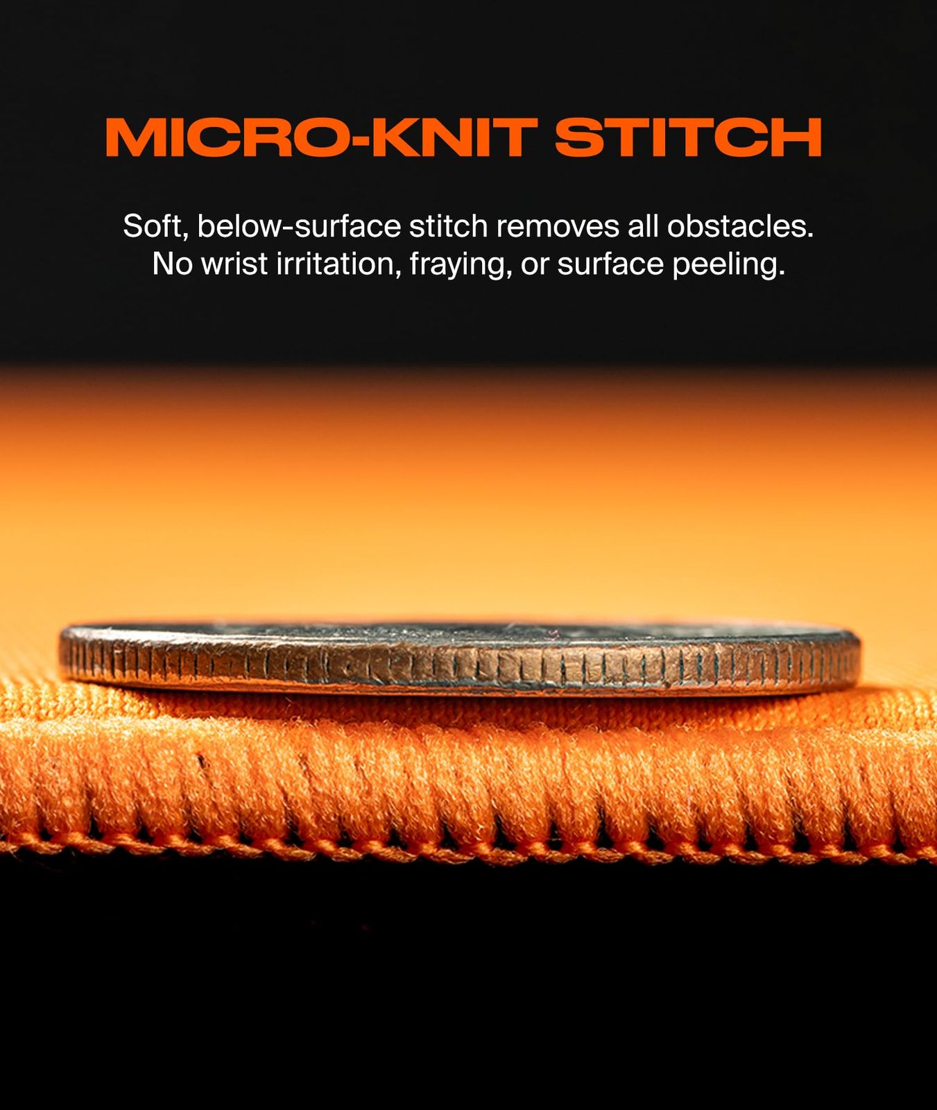 従来のマウスパッドよりも微細なニットステッチ加工を施すことでサイドステッチがマウスパッド表面より下に来ることにより、ほつれ・剥離防止性能と擦れなどが起こりにくくなり耐久性が向上。ステッチ部が手に触れにくくなりました。