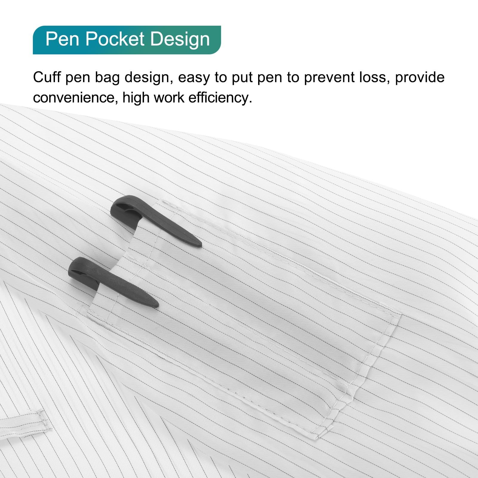 [ペンポケットデザイン]:カフスにはペンポケットがあり、ペンを紛失することなく簡単に収納できます。便利さと高い作業効率を提供します。