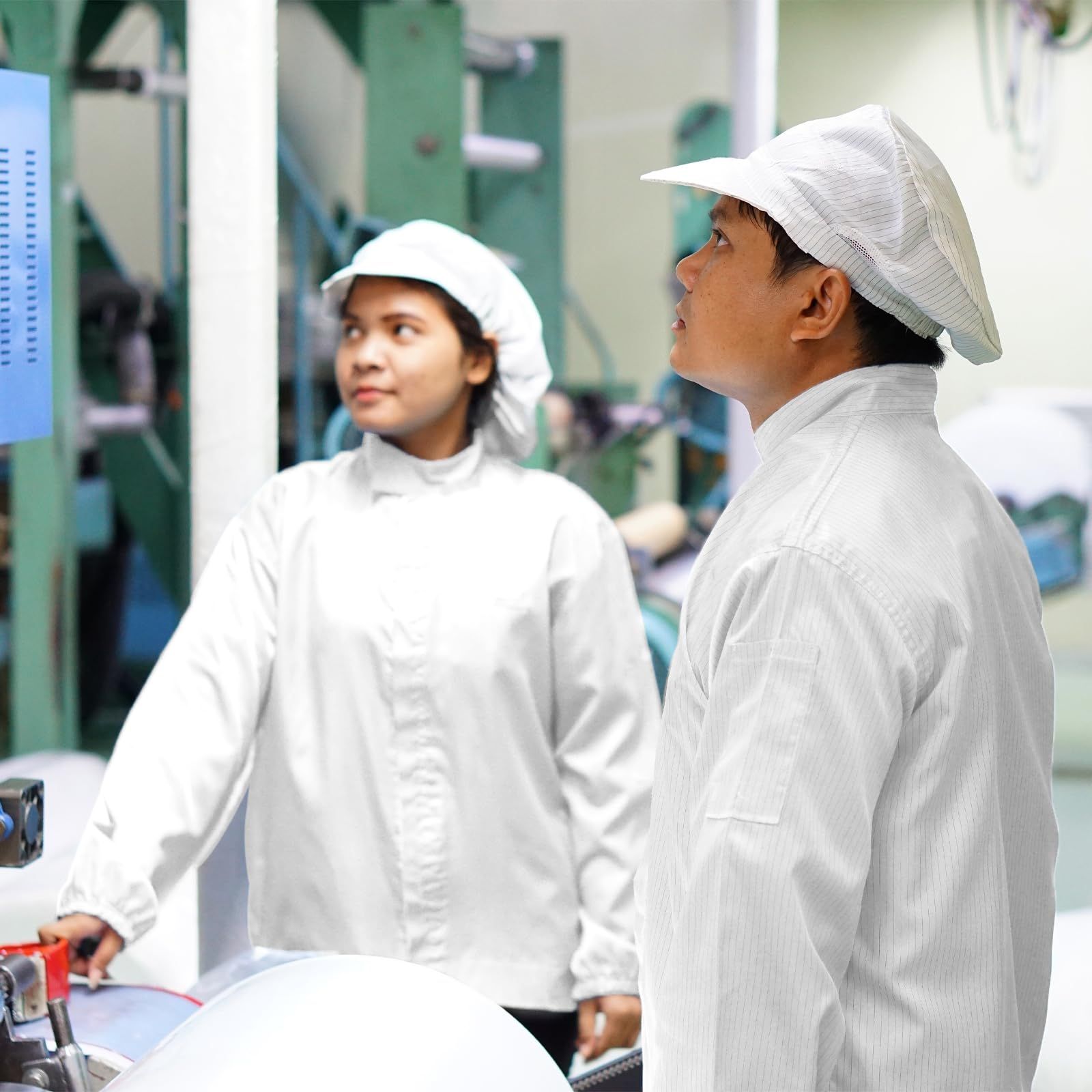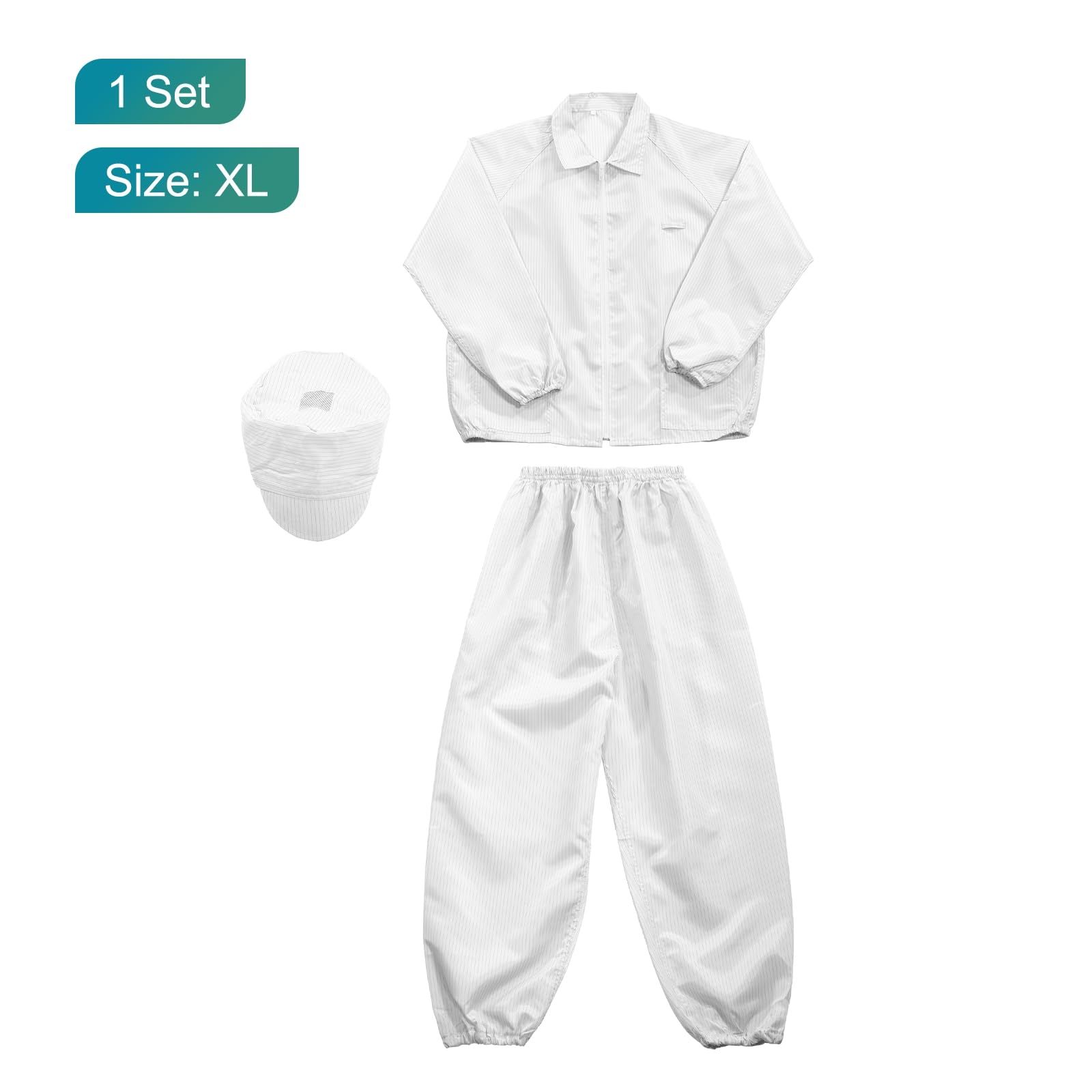 uxcell ESDラボコート 静電気防止服 科学ジャケット カフス ラ ペルカラー付き 帽子付き ユニフォーム 男女兼用 (ホワイト XL)