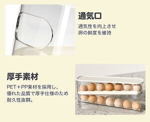 毎回の取り出しがラクラク スライド式で卵が自動でコロコロ転がり、サッと取り出せます。もう毎回パックを開ける手間はありません。