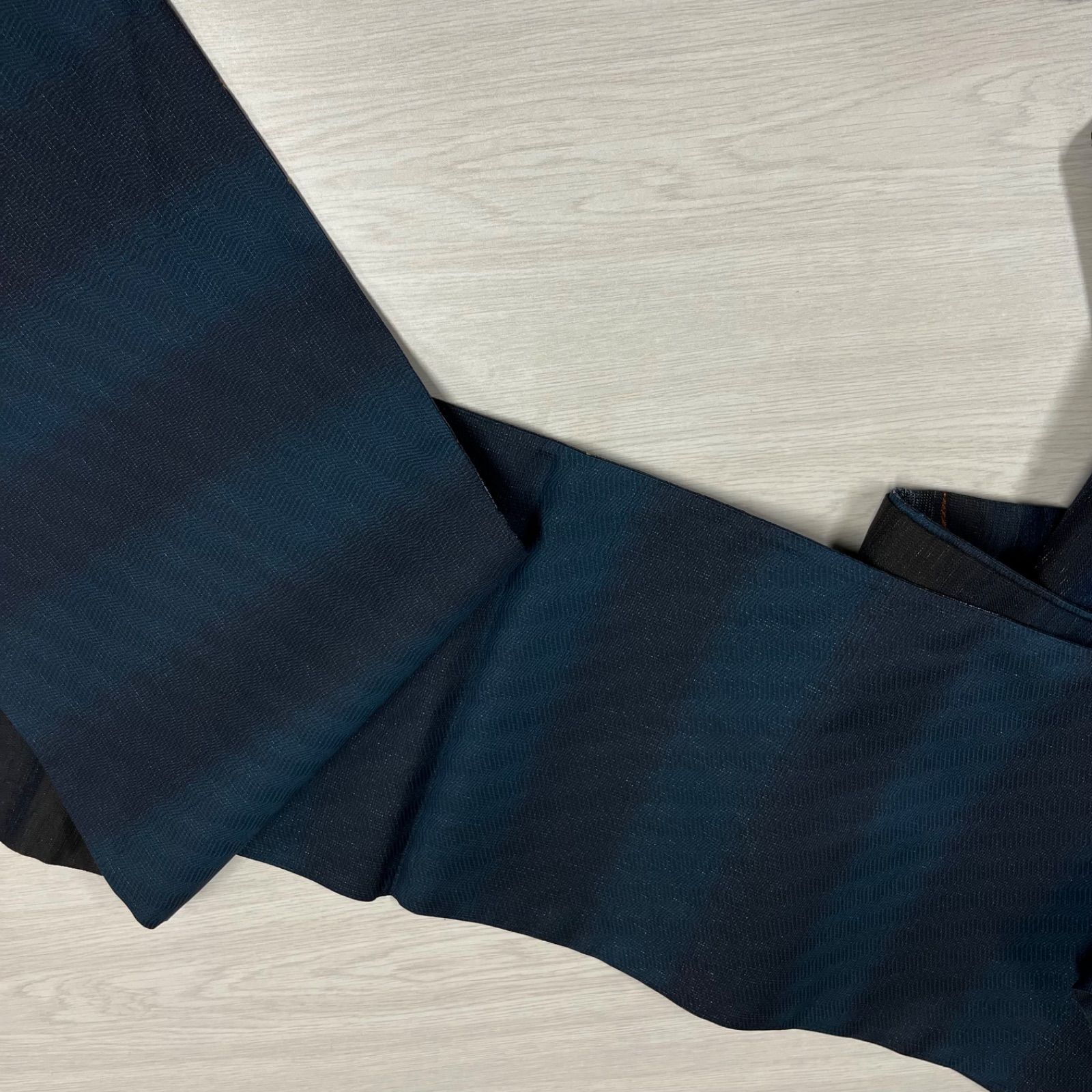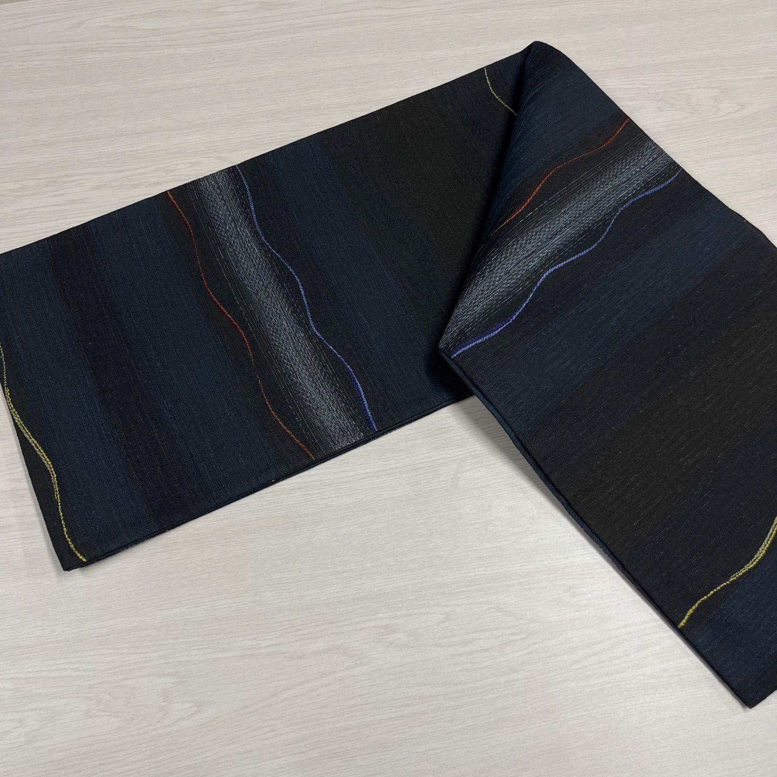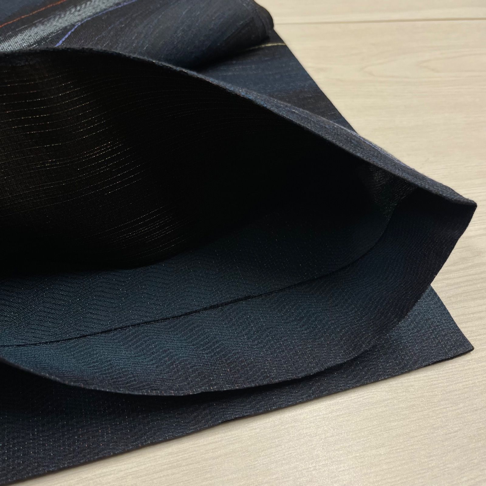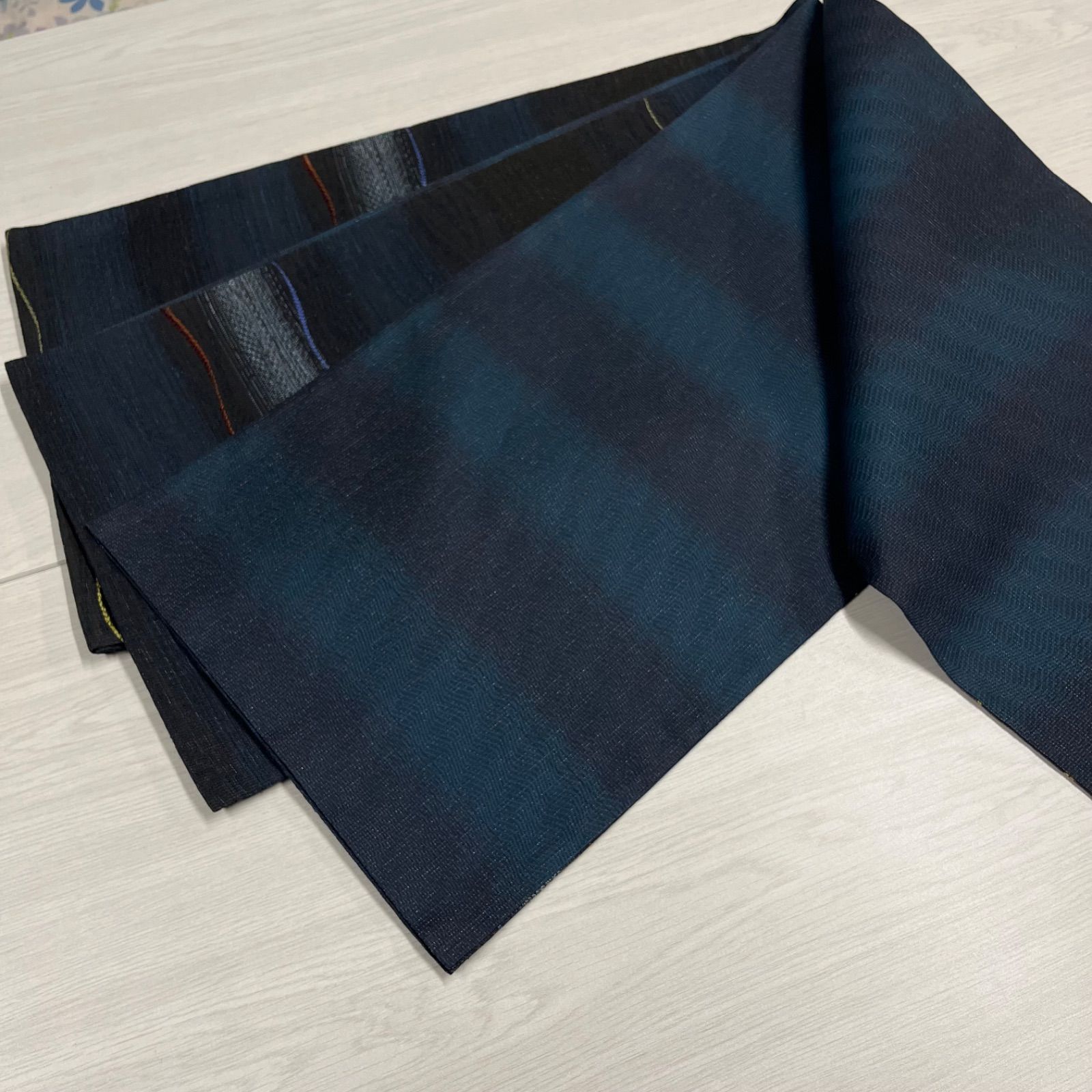 【未使用品】 匿名配送 未仕立て 西陣織 三重畦地織 袋帯 紺 青 黒 紬 小紋 着物 きもの カジュアル