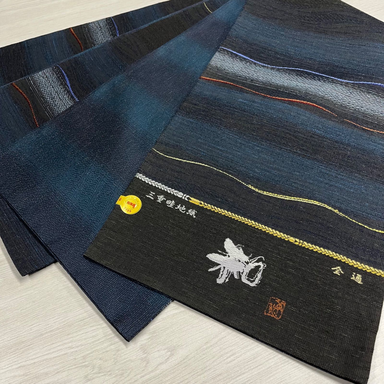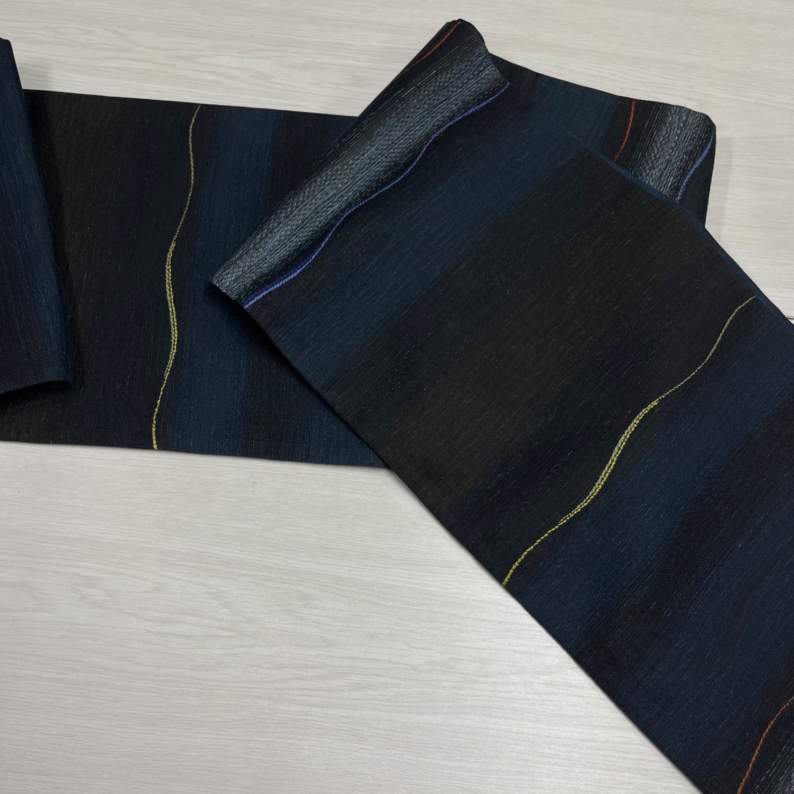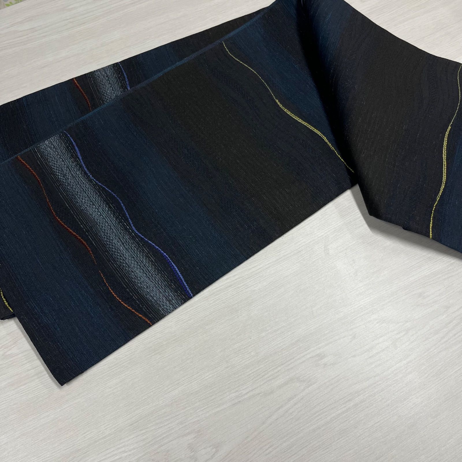 【未使用品】 匿名配送 未仕立て 西陣織 三重畦地織 袋帯 紺 青 黒 紬 小紋 着物 きもの カジュアル