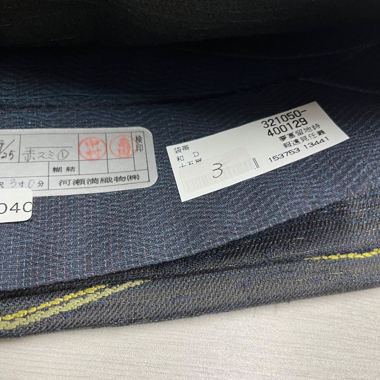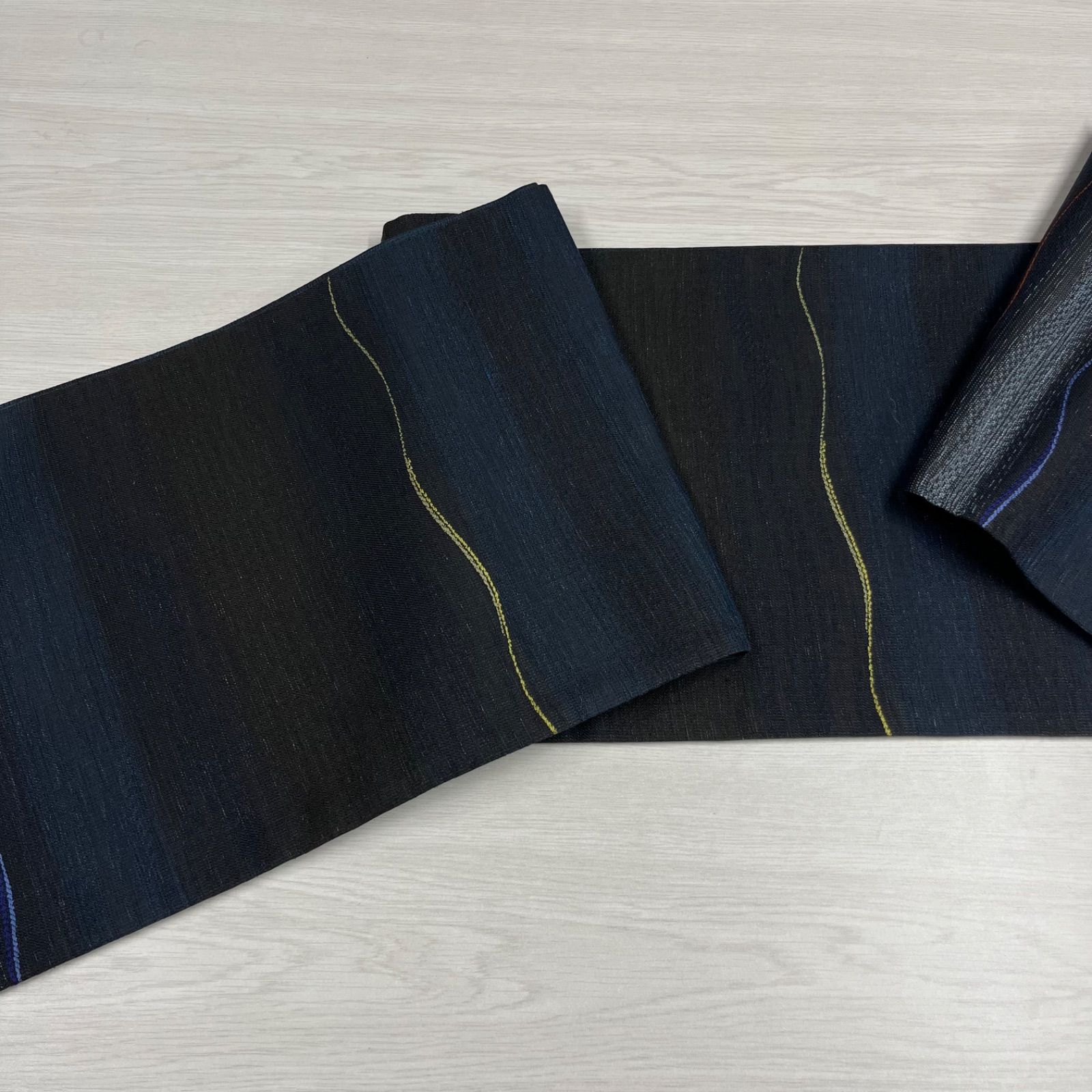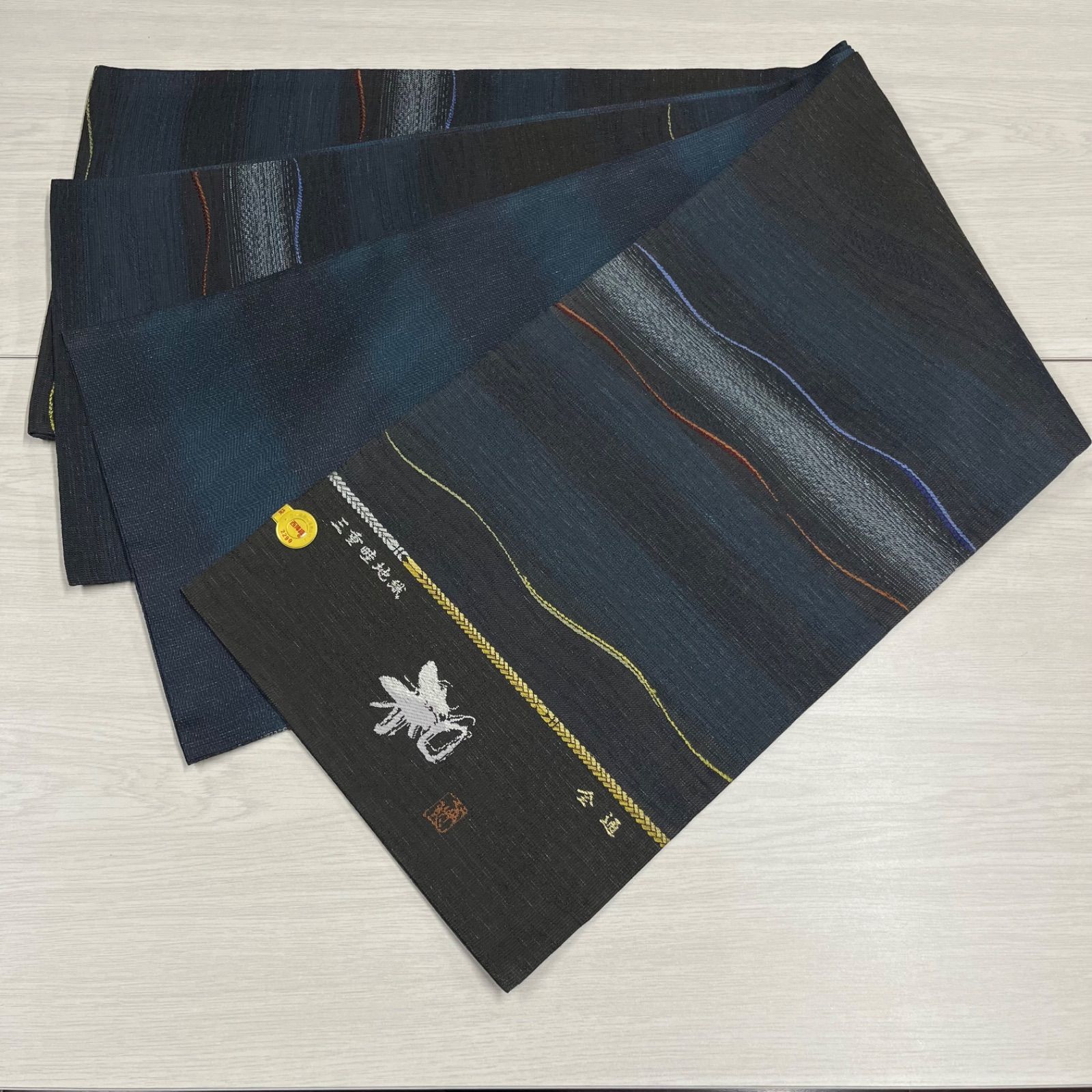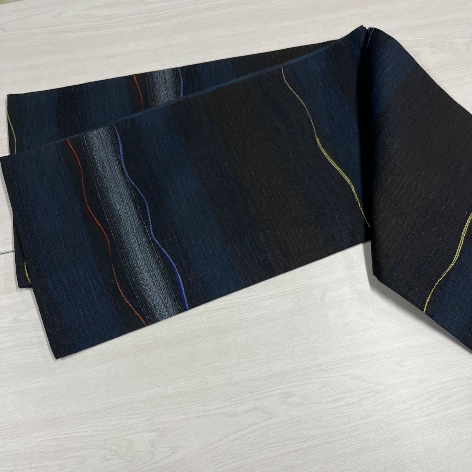 【未使用品】 匿名配送 未仕立て 西陣織 三重畦地織 袋帯 紺 青 黒 紬 小紋 着物 きもの カジュアル