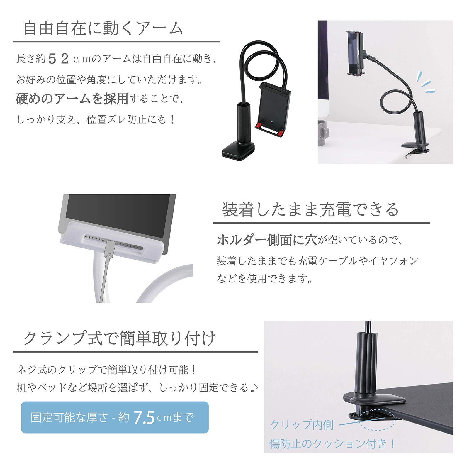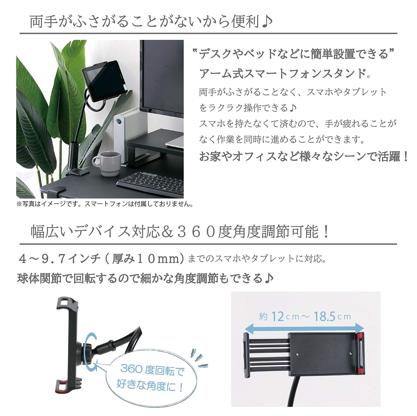 武田コーポレーション デスクまわり・収納・便利 【スマートフォンスタンド・スマホスタンド・アーム式】 ブラック 360°角度調整可能 スマートフォンスタンドアーム式 N1-ST12BK 12×6.5×78cm