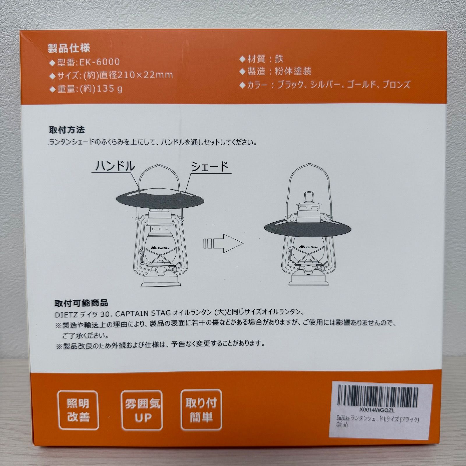ランタンシェードのふくらみを上にして、ハンドルを通しセットし、取り付け完了となります