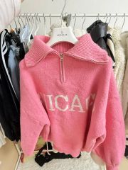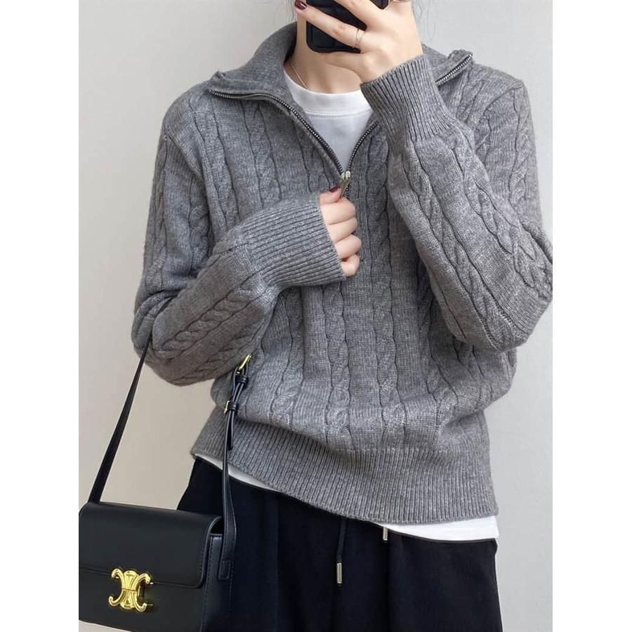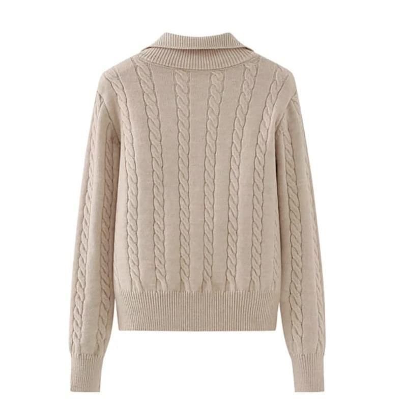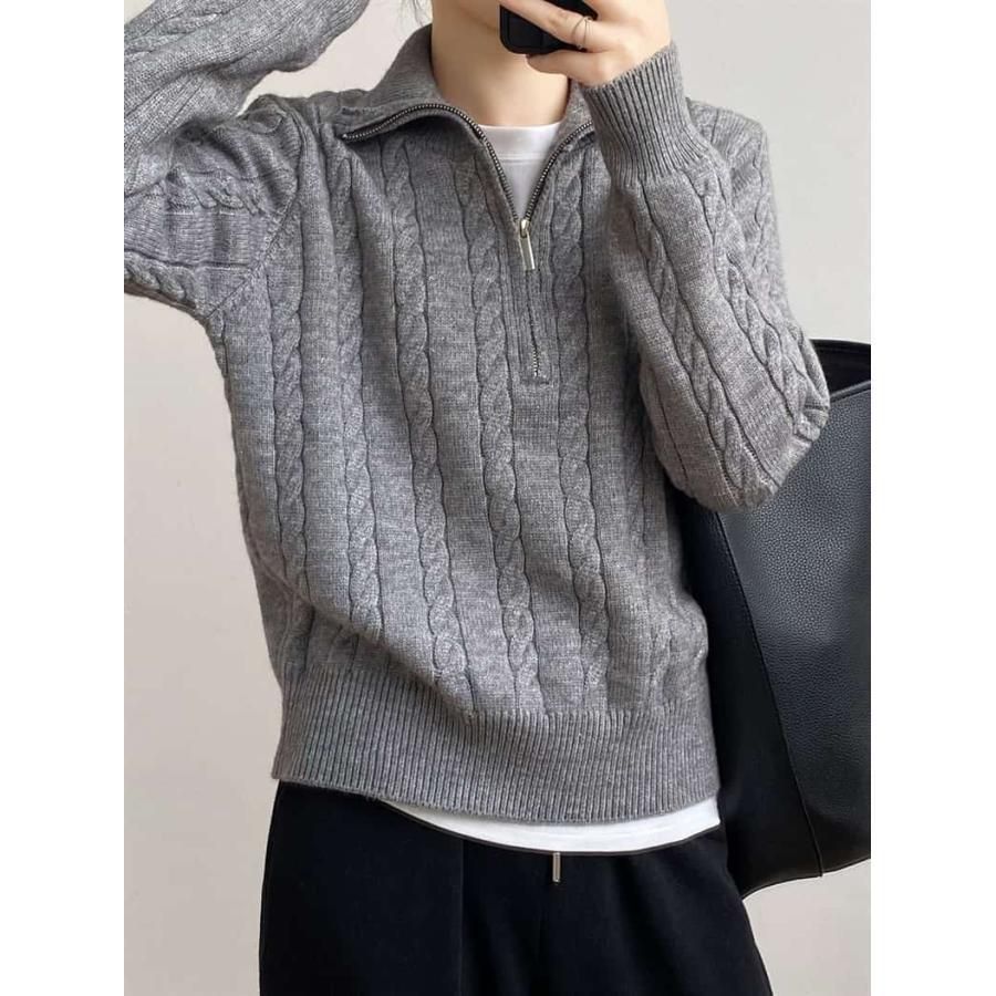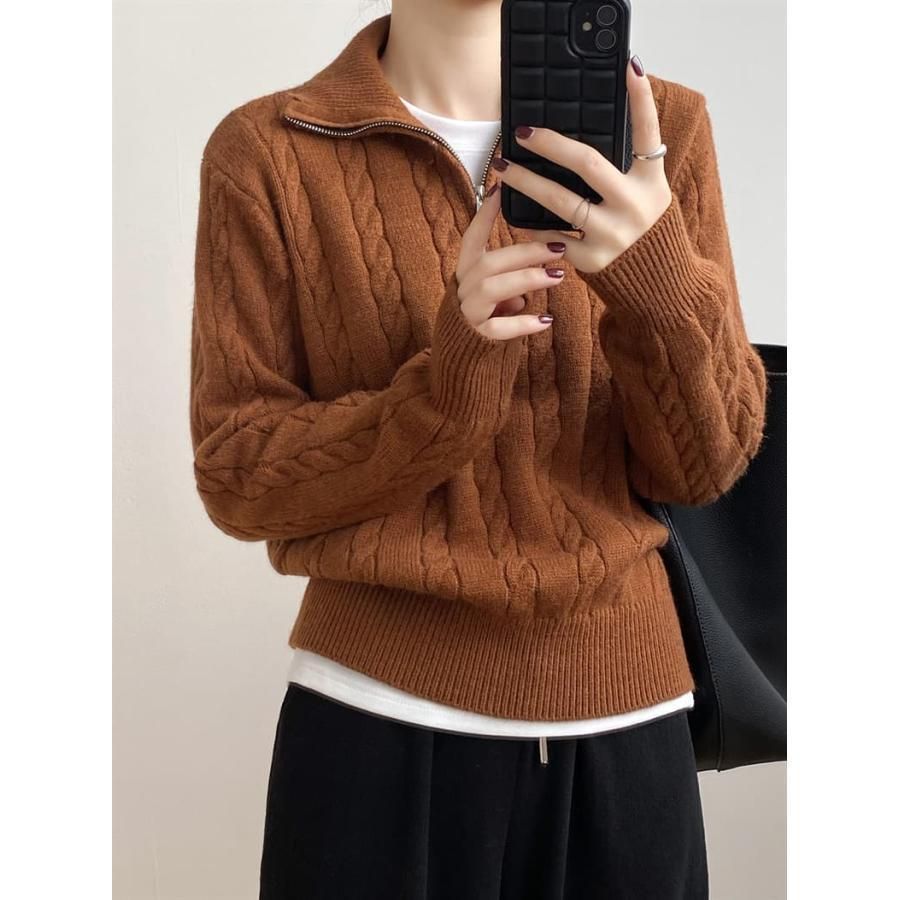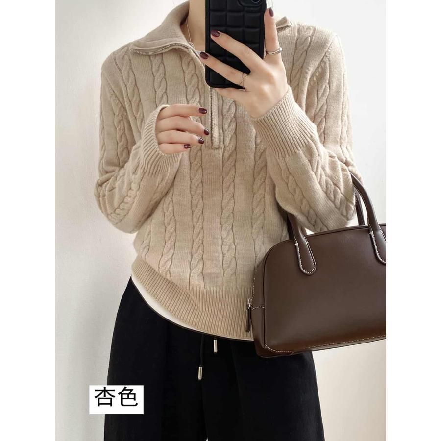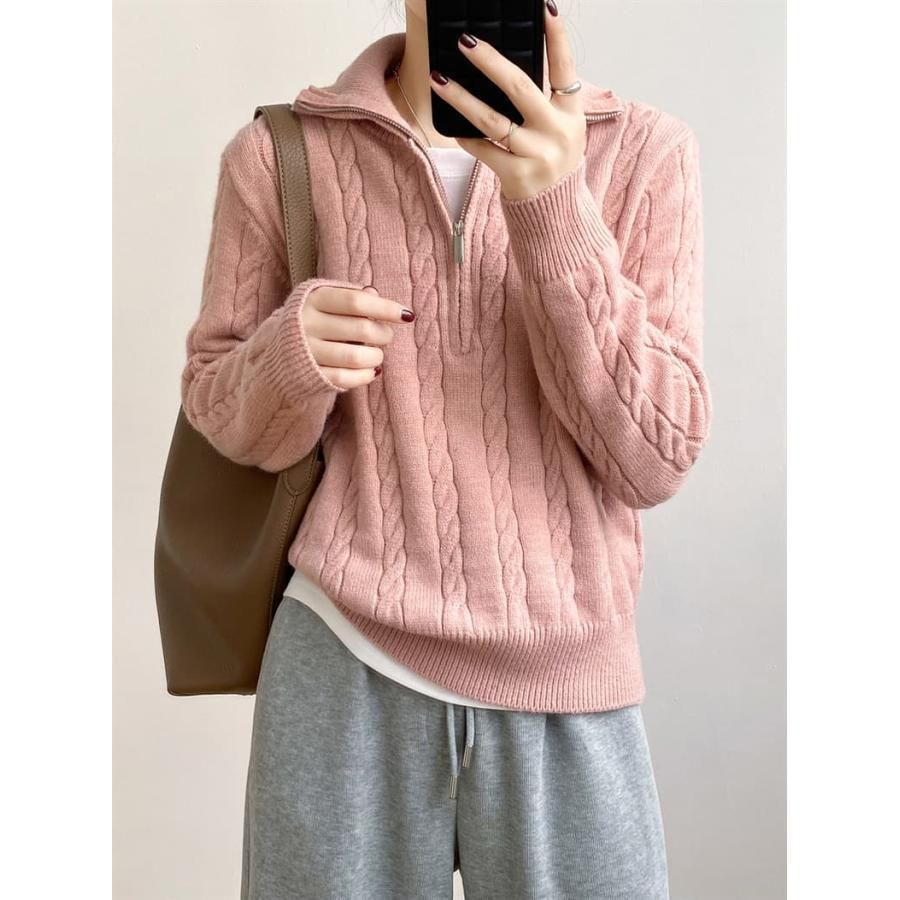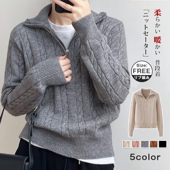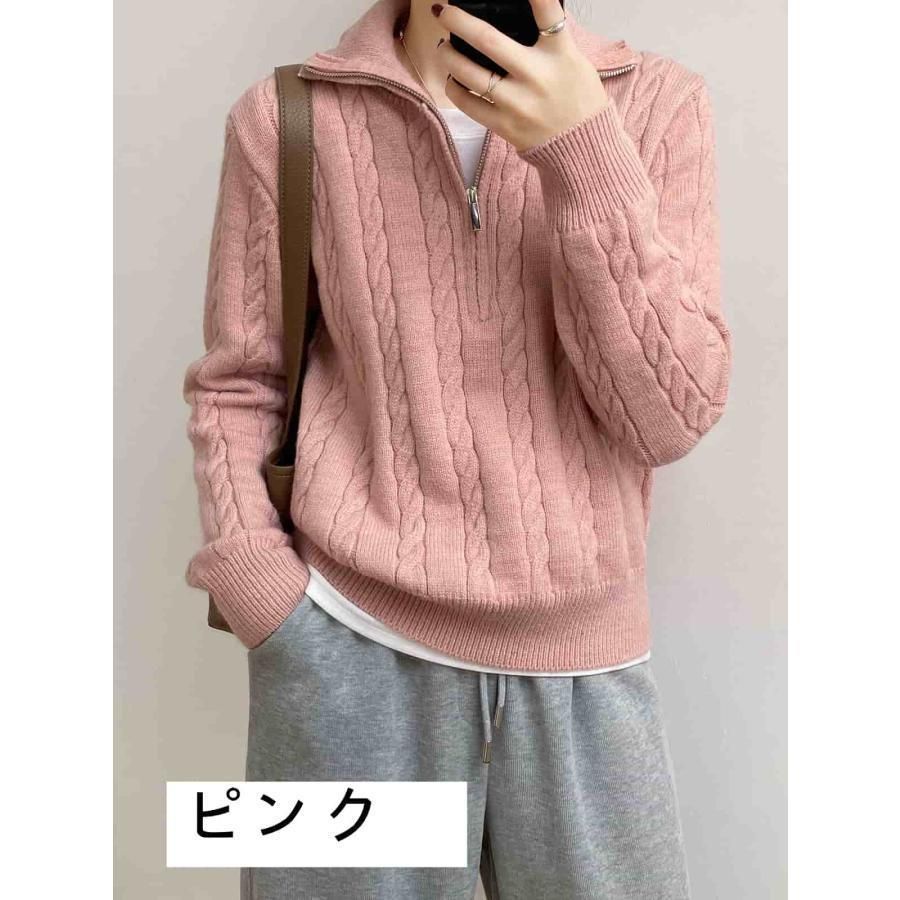 ニットセーター レディース秋冬 ハーフジップ ゴルフウェア ケーブルニット 襟付き 長袖 リブ編み プルオーバー カジュアル