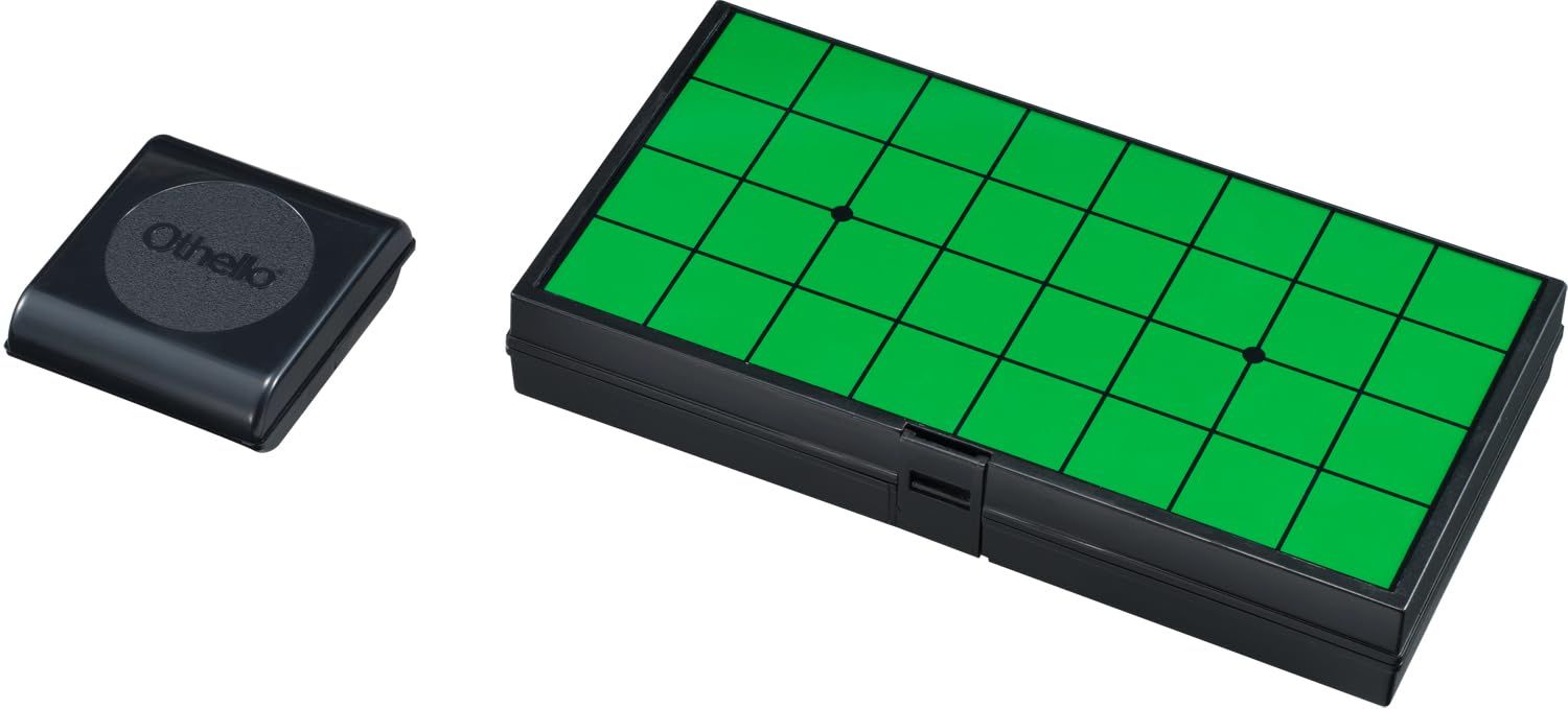 オセロ石はマグネット入りで盤からズレにくく、盤は石ケースを2つ入れて折りたためて一式コンパクトに収納できます。