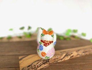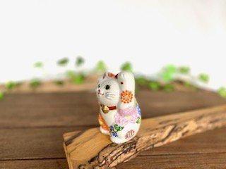 九谷焼の招き猫。金運と千客万来を願い、デコ盛絵付け。商売繁盛のシンボル。サイズ:高さ12×幅7×奥行7? 詳細へ。