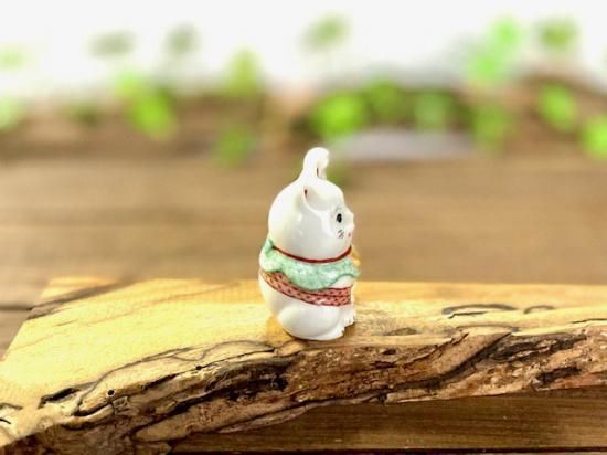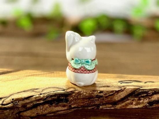 メーカー直送 九谷焼 招き猫 幸福 置物 チビ 赤絵細描 2号(千客万来)木箱入り
