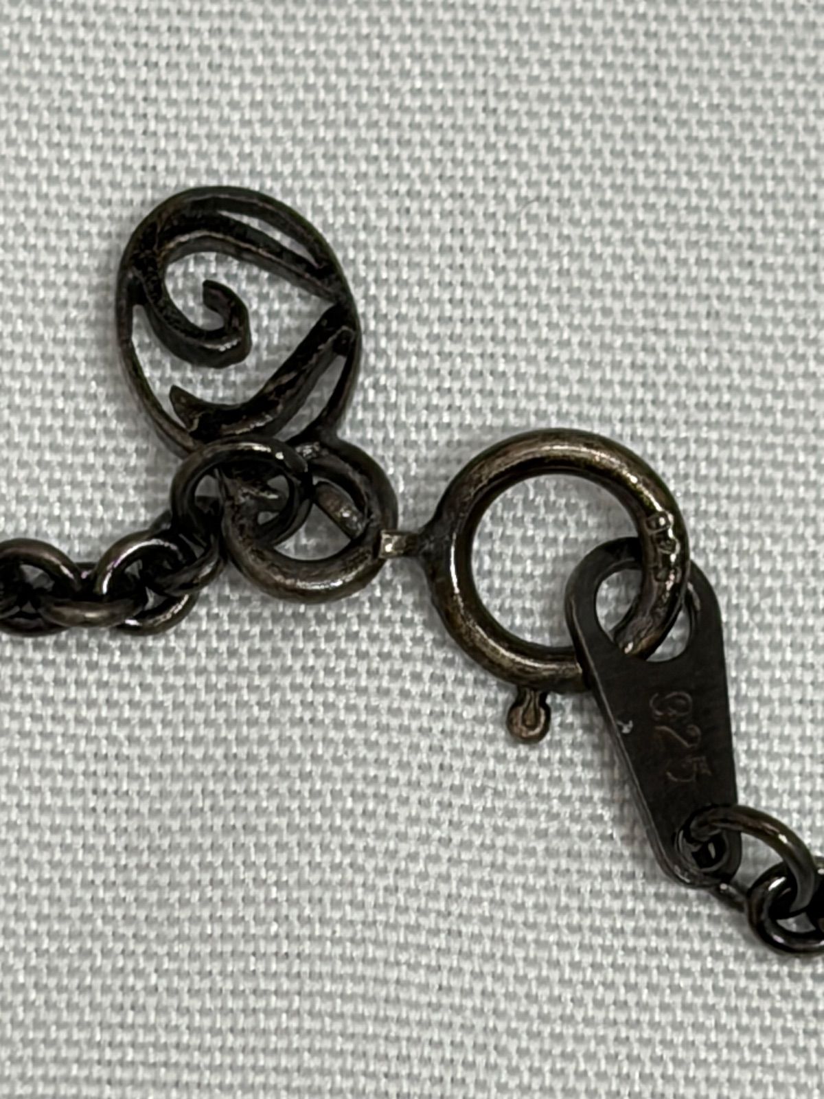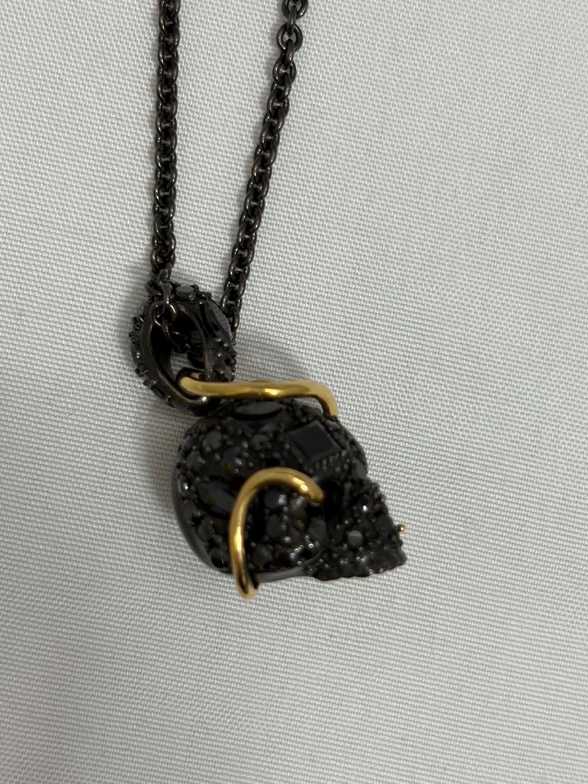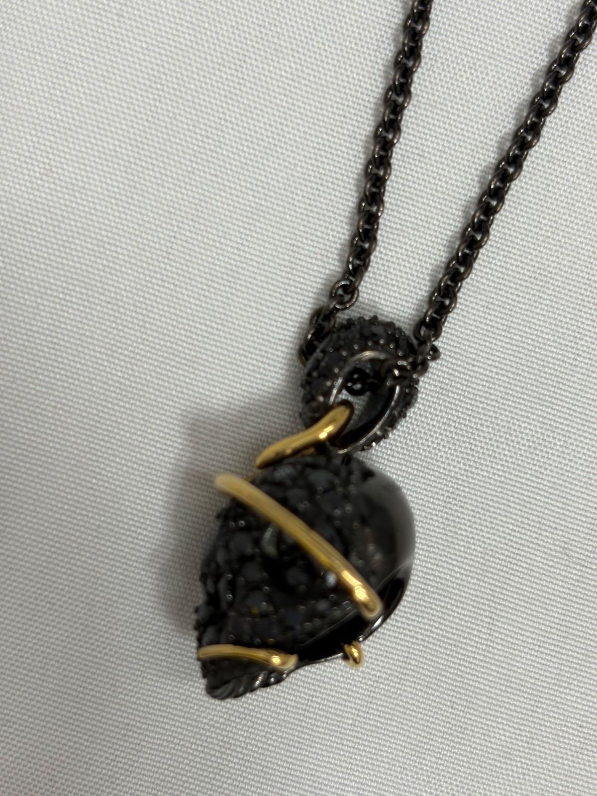 スネークはK18、その他はSV925。オニキス&ブラックスピネルを使用。チェーンの留め具に「925」の刻印が有ります。