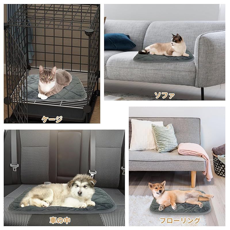 【シーン】床に敷くのはもちろん、キャリーバッグ、サークル、犬ケージ、車のシートやソファなど平らでない場所の上でも使えます。