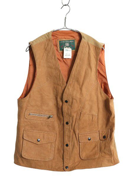 デッドストック 90s オービス 本革 レザー ハンティング ベスト メンズ M 未使用品 オールド 旧タグ ヌバック 前開き 重ね着 多ポケット 茶