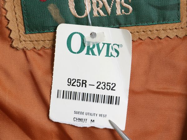 新品 新古品 未使用 90’s 90年代 ORVIS スウェード レザーベスト ハンティングベスト ジレ フィッシング ライナーが付き ブラウン