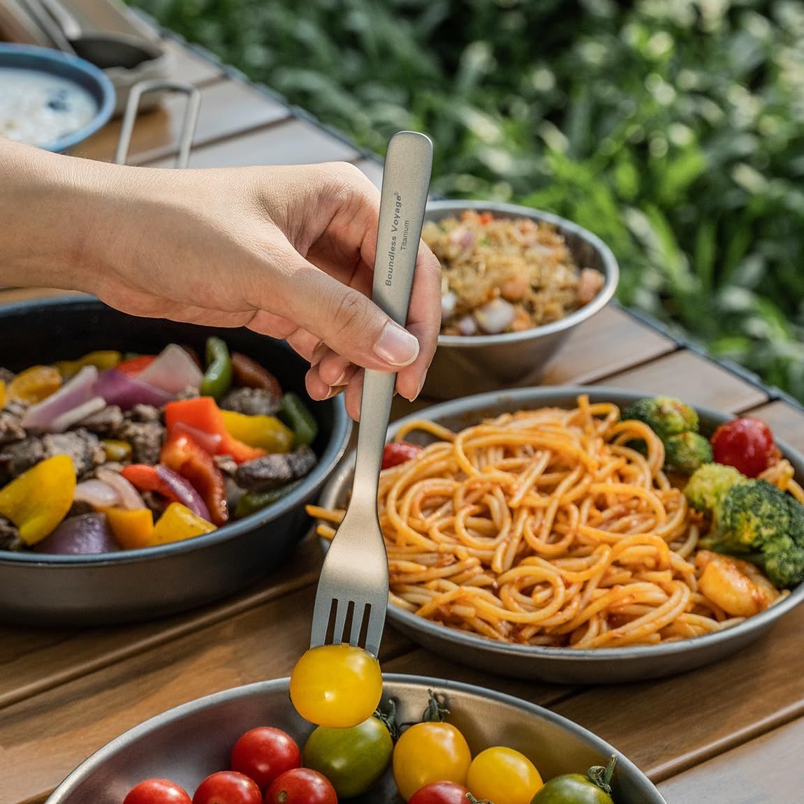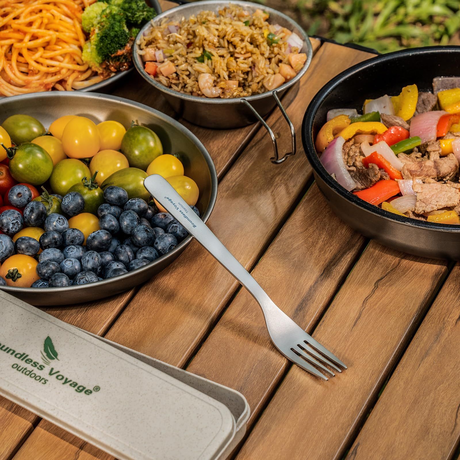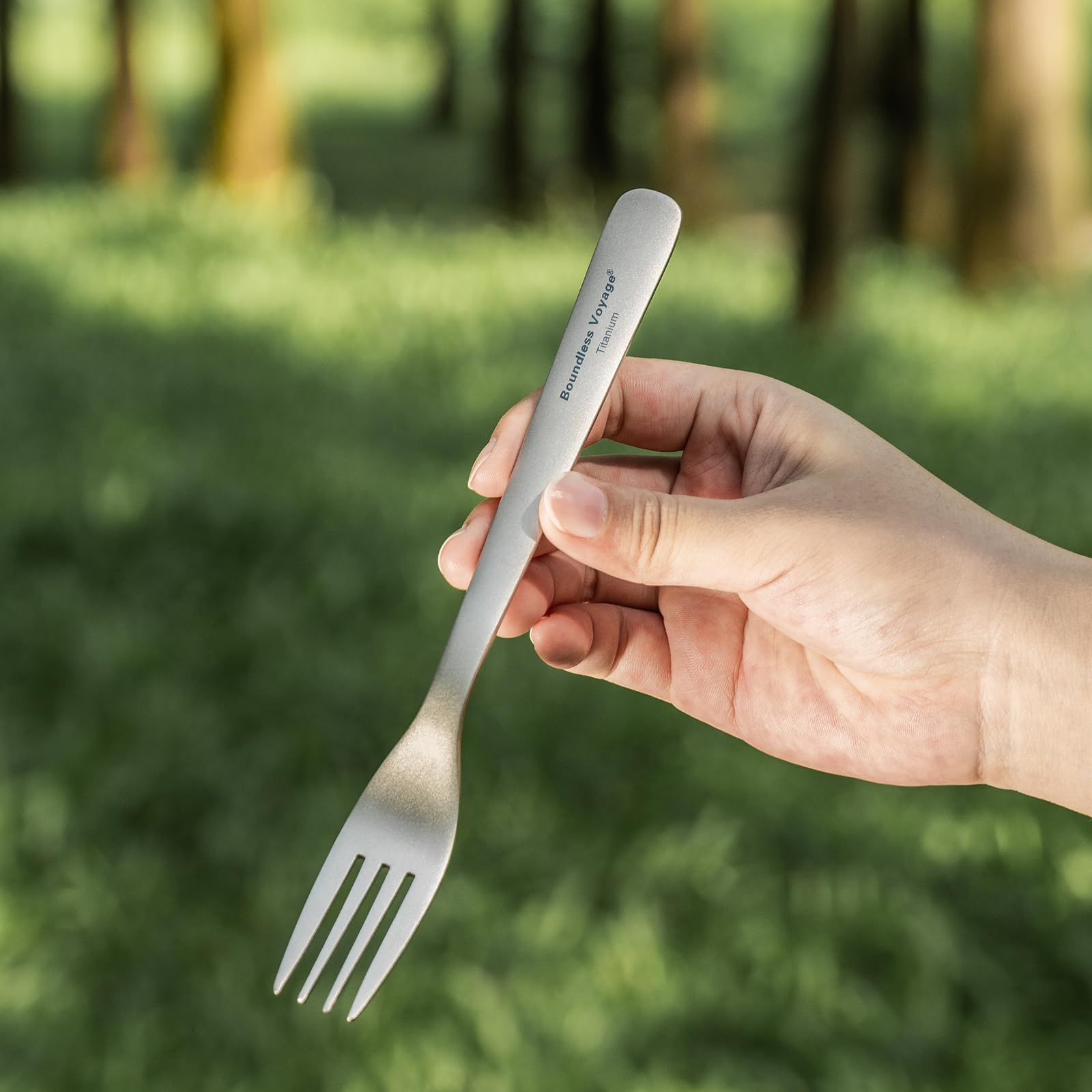 Boundless Voyage チタンカトラリーセット スプーン フォーク 箸 軽量 頑丈 コンパクト カトラリー 調理器具 ソロキャンプ 食器 アウトドア キャンプ 用品 収納袋付き (フォーク(原色))