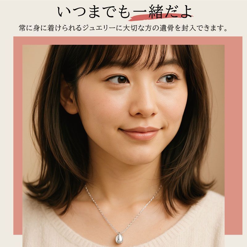 中に遺骨を封入し大切な方の形見としていつでも着用いただけます。